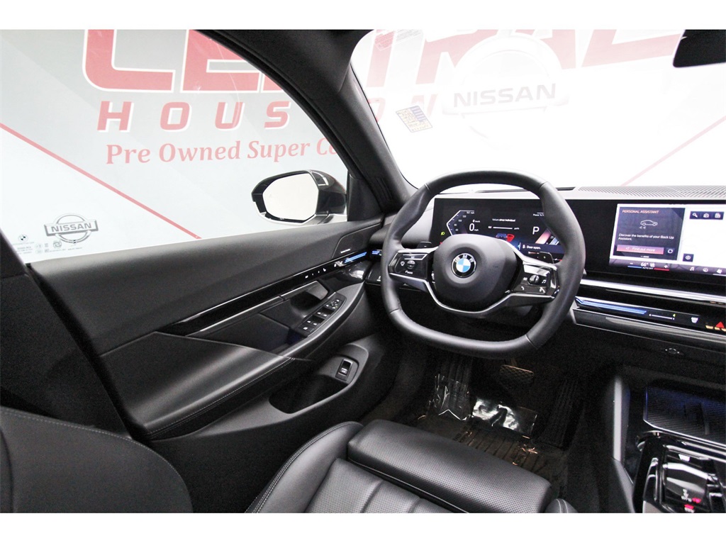 Central Houston Nissan is proud to present you with another True Market Priced Pre-Owned Vehicle. This 2024 BMW 5 Series 530i is loaded with the following Factory Options: Connected Package Pro, 12 Speakers, 4-Wheel Disc Brakes, ABS brakes, Air Conditioning, Alloy wheels, AM/FM radio: SiriusXM with 360L, Auto tilt-away steering wheel, Auto-dimming door mirrors, Auto-dimming Rear-View mirror, Automatic temperature control, BMW Assist eCall, BMW TeleServices, Brake assist, Bumpers: body-color, ConnectedDrive Services, Delay-off headlights, Driver door bin, Driver vanity mirror, Dual front impact airbags, Dual front side impact airbags, Electronic Stability Control, Emergency communication system: BMW Assist eCall, Exterior Parking Camera Rear, Four wheel independent suspension, Front anti-roll bar, Front Bucket Seats, Front Center Armrest, Front dual zone A/C, Front reading lights, Fully automatic headlights, Garage door transmitter, Genuine wood dashboard insert, Genuine wood door panel insert, harman/kardon® Logic 7® Digital Surround, harman/kardon® Speakers, Head restraints memory, Heated door mirrors, Illuminated entry, Leather steering wheel, Low tire pressure warning, Lumbar Support, Memory seat, Navigation System, Occupant sensing airbag, Outside temperature display, Overhead airbag, Panic alarm, Passenger door bin, Passenger vanity mirror, Power adjustable front head restraints, Power door mirrors, Power driver seat, Power Front Seats, Power moonroof, Power passenger seat, Power steering, Power windows, Radio data system, Radio: AM/FM Audio System, Rain sensing wipers, Rear anti-roll bar, Rear reading lights, Rear seat center armrest, Rear window defroster, Remote keyless entry, Security system, SiriusXM w/360L & 1 Yr Platinum Plan Subscription, Speed control, Speed-sensing steering, Speed-Sensitive Wipers, Split folding rear seat, Sport Seats, Steering wheel memory, Steering wheel mounted audio controls, Tachometer, Telescoping steering wheel, Tilt steering wheel, Traction control, Trip computer, Turn signal indicator mirrors, Variably intermittent wipers, Veganza Perforated & Quilted Upholstery, and Wheels: 19" x 8.5" Light-Alloy Triplex-Spoke!!Central Houston Nissan is more than just your typical car dealership. When our customers visit us, our goal is to provide quality vehicles, exceptional service and a friendly atmosphere. Our staff has been trained to create ease during your purchase or service experience and we are always making sure you get everything you want and deserve out of your visit. Our vision and mission is an employee-centered and customer-focused environment. Vehicles may be subject to prep package and market adjustment. When you buy from Central Houston Nissan, we'll make it the best car buying experience you've ever had. When you purchase a New Nissan or a qualifying Pre-Owned vehicle from Central Houston Nissan, you are automatically enrolled into our Central Houston Nissan Central Care Program at no cost to you. You can’t beat that! Vehicles may be subject to prep package and market adjustment. Stop by 2901 S Loop W, Houston, Texas 77054 today!!!