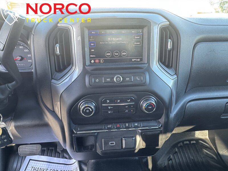 INSTALLED FEATURES: Air filtration, Front air conditioning, Front air conditioning zones: single, Airbag deactivation: occupant sensing passenger, Front airbags: dual, Side airbags: front, Side curtain airbags: front, Antenna type: mast, Auxiliary audio input: Bluetooth / iPod/iPhone / USB, Radio: AM/FM / touch screen display, Radio data system, Speed sensitive volume control, Total speakers: 2, ABS: 4-wheel, Braking assist, Electronic brakeforce distribution, Electronic parking brake: auto off, Front brake type: ventilated disc, Power brakes, Rear brake type: ventilated disc, Armrests: front center, Floor material: rubber/vinyl, Steering wheel trim: urethane, Assist handle: front, Capless fuel filler system, Cupholders: front, Overhead console: front, Power outlet(s): 12V front, Power steering, Reading lights: front, Rearview mirror: manual day/night, Steering wheel: tilt, Storage: door pockets, Sun visors, Bumper detail: rear step, Door handle color: black, Exhaust tip color: stainless steel, Fender lip moldings: black, Front bumper color: black, Grille color: black, Mirror color: black, Pickup bed light, Rear bumper color: black, Tailgate: removable, Window trim: black, Infotainment: Chevrolet Infotainment System, Infotainment screen size: 7 in., Smartphone integration: Android Auto / Apple CarPlay, Clock, Digital odometer, External temperature display, Fuel economy display: MPG / range, Gauge: oil pressure / tachometer, Instrument cluster screen size: 3.5 in., Multi-function display, Powertrain hour meter, Trip odometer, Warnings and reminders: coolant temperature warning / lamp failure / low battery / low fuel level / low oil pressure / maintenance due, Daytime running lights, Headlights: auto delay off / auto on/off / halogen / wiper activated, Side mirror adjustments: manual / manual folding / manual telescoping, Towing mirrors, Alternator: 170 amps, Auxiliary oil cooler, Auxiliary transmission fluid cooler, Battery: heavy duty / maintenance-free, Battery rating: 720 CCA, Battery saver, Locking differential: rear, Camera system: rearview, Child seat anchors, Programmable safety key, Rearview monitor: in dash, Emergency locking retractors: front, Front seatbelts: 3-point, Seatbelt pretensioners: front, Seatbelt warning sensor: front, Driver seat manual adjustments: 4 / reclining, Front headrests: 2 / adjustable, Front seat type: 40-20-40 split bench, Passenger seat manual adjustments: 4 / reclining, Upholstery: vinyl, Anti-theft system: vehicle immobilizer, Hill holder control, Roll stability control, Stability control, Traction control, Trailer stability control, Front shock type: twin-tube gas, Front spring type: torsion bars, Front stabilizer bar: diameter 35 mm, Front suspension classification: independent, Front suspension type: short and long arm, Rear shock type: twin-tube gas, Rear spring type: leaf, Rear suspension classification: solid live axle, Rear suspension type: multi-leaf, Electronic messaging assistance: voice operated / with read function, Hands-free phone call integration: voice operated, Wireless data link: Bluetooth, Pickup bed cargo management: tie-down anchors, Tow hooks: front, Tow/Haul mode, Trailer hitch, Trailer wiring: 4-pin / 7-pin, Spare tire mount location: underbody, Spare tire size: full-size, Spare wheel type: steel, Tire Pressure Monitoring System, Wheels: painted steel, Front wipers: variable intermittent, Solar-tinted glass