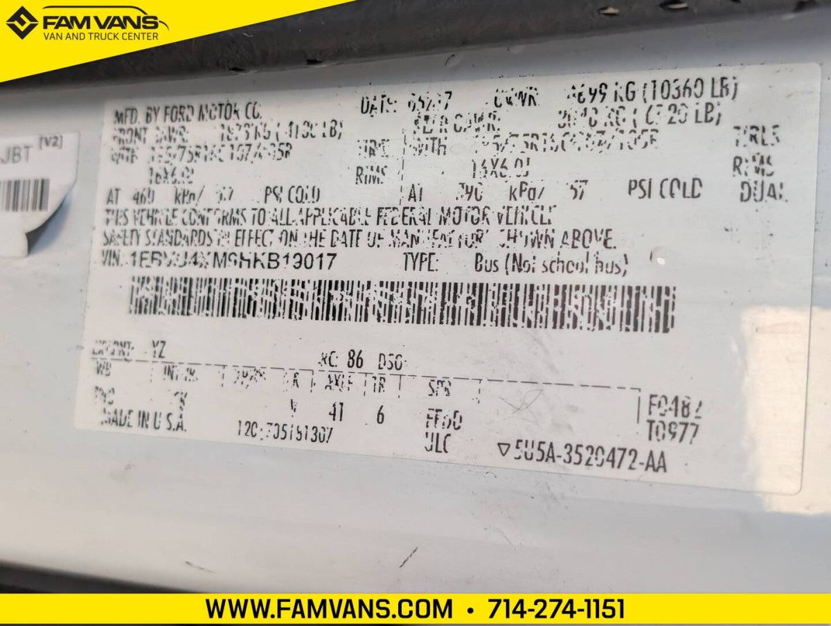 Here at FAM Vans we have over 350 vans and trucks in stock at any given time, plus we get fresh inventory every month. We can modify any vehicle to fit your needs or find the right one that fits your budget! Full Parts and Service departments. -LWB / 148-in WB -GVWR: 10,360 LBS -Dimensions: 263.9 L x 107.7 H