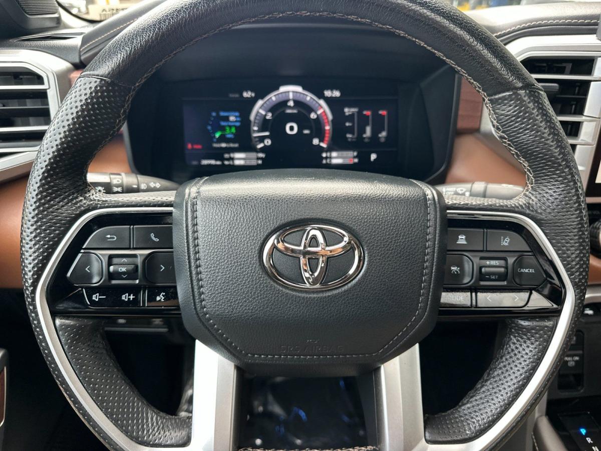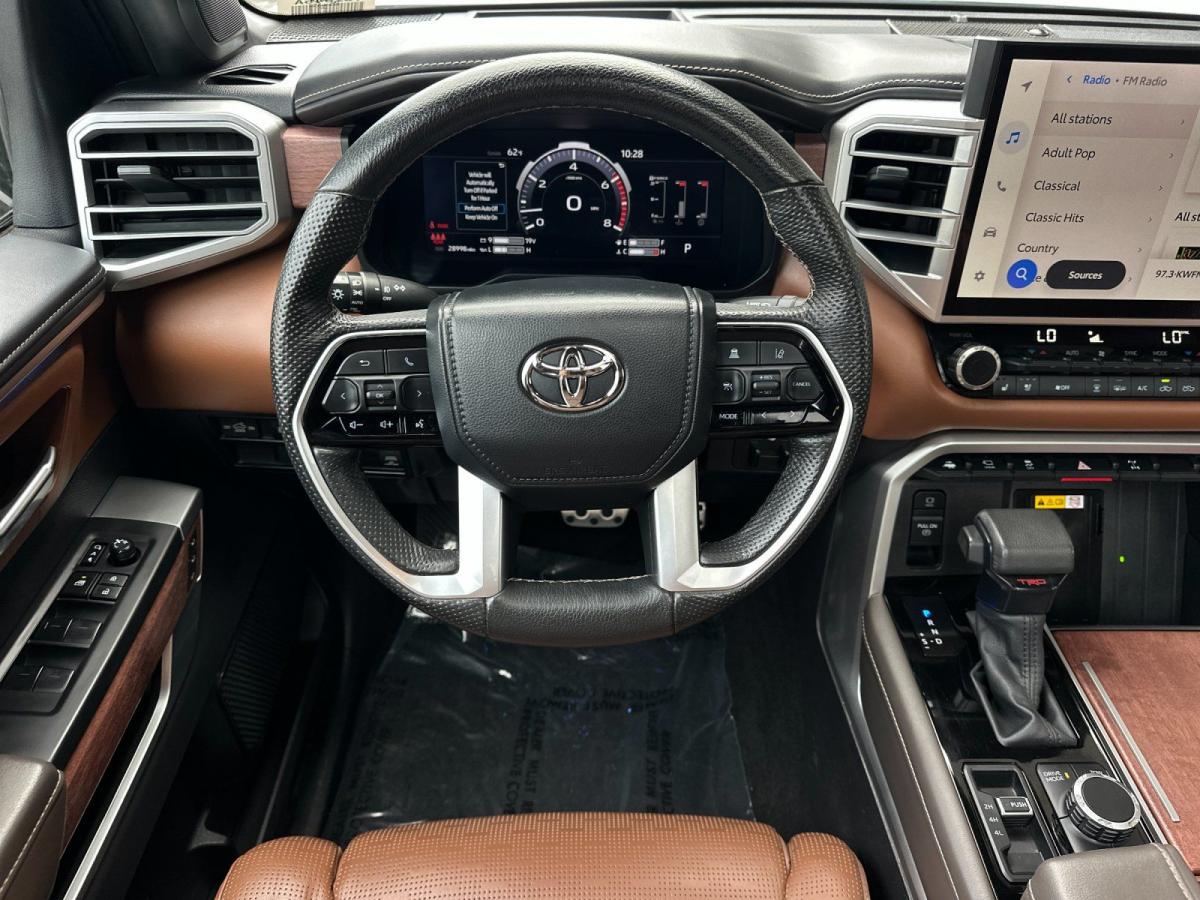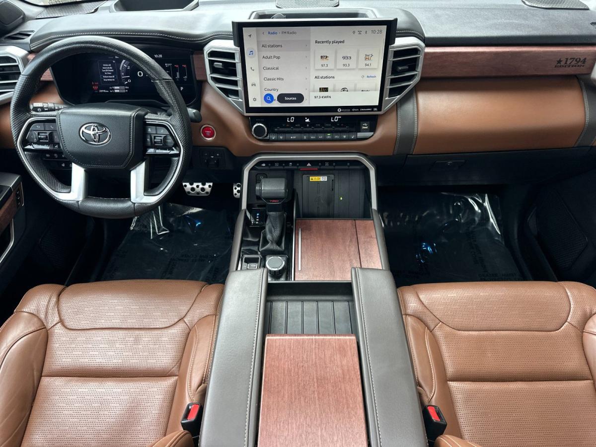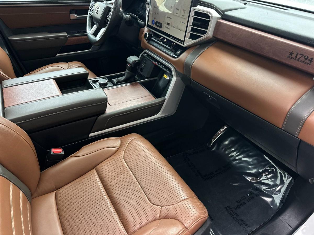 Elevate your driving experience with this remarkable 2024 Toyota Tundra 1794. This exceptional vehicle is more than just a truck - it's a statement of power, capability, and refined sophistication.Boasting an impressive array of premium features, this Tundra is tailored to exceed your expectations. Key highlights include:• TRD 3" Lift Kit (TMS)• Collision Warning System• Parking Sensors• Premium Sound System• Push Button Ignition• Navigation System• TRD Off-Road Package• Leather and Heated/Ventilated SeatsThe Tundra's 3.4L V6 engine, paired with a smooth-shifting 10-speed automatic transmission and 4-wheel drive, delivers a commanding performance on and off the road. With a city fuel economy of 17 MPG and 22 MPG on the highway, this truck strikes an impressive balance between power and efficiency.Beyond its impressive capabilities, the Tundra 1794 exudes a refined and sophisticated presence. The beige exterior, complemented by the chrome accents and 20-inch alloy wheels, creates a bold and distinctive look that is sure to turn heads. Step inside the cabin, and you'll be greeted by a spacious and well-appointed interior, featuring premium leather seating, a panoramic sunroof, and a state-of-the-art infotainment system with seamless smartphone integration.This one-owner Tundra with a clean CARFAX report and low mileage of just 28,944 miles is a rare find. Meticulously maintained and loaded with desirable features, it's the perfect blend of capability, comfort, and style.Experience the power and refinement of the 2024 Toyota Tundra 1794 for yourself. We invite you to schedule a test drive and discover why this exceptional truck is the perfect choice for your next adventure.
