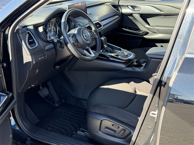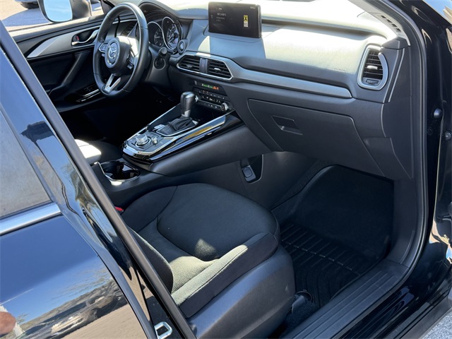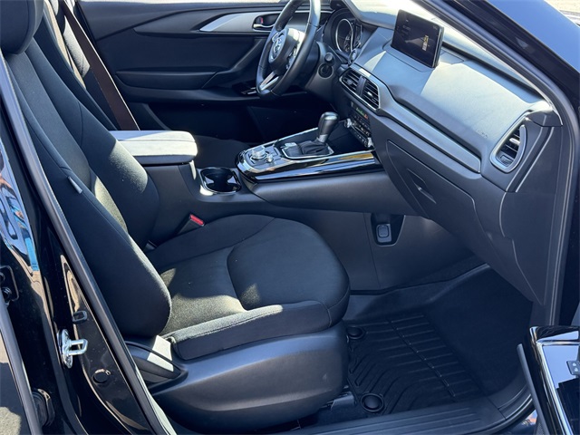 Recent Arrival!20/26 City/Highway MPGJet Black Mica 2022 Mazda CX-9 Sport AWD 6-Speed Automatic 2.5L 4-Cylinder AWD.If you don't drive here, you can't save here!Price may not include recon fee. AWD, 3rd row seats: bench, 4-Wheel Disc Brakes, 4.411 Axle Ratio, 6 Speakers, ABS brakes, Air Conditioning, Alloy wheels, AM/FM radio, AppLink/Apple CarPlay and Android Auto, Auto High-beam Headlights, Automatic temperature control, Brake assist, Bumpers: body-color, Cloth Seat Trim, Compass, Delay-off headlights, Driver door bin, Driver vanity mirror, Dual front impact airbags, Dual front side impact airbags, E911 Automatic Emergency Notification, Electronic Stability Control, Emergency communication system: MAZDA CONNECT, Exterior Parking Camera Rear, Four wheel independent suspension, Front anti-roll bar, Front Bucket Seats, Front Center Armrest, Front dual zone A/C, Front reading lights, Fully automatic headlights, Heated door mirrors, Heated Front Bucket Seats, Heated front seats, Illuminated entry, Infotainment System Voice Command, Leather Shift Knob, Leather steering wheel, Low tire pressure warning, Mazda Connected Services, Occupant sensing airbag, Outside temperature display, Overhead airbag, Overhead console, Pandora Internet Radio Integration, Panic alarm, Passenger door bin, Passenger vanity mirror, Power door mirrors, Power driver seat, Power steering, Power windows, Radio Broadcast Data System Program Information, Radio data system, Radio: AM/FM Sound System, Rain sensing wipers, Rear air conditioning, Rear anti-roll bar, Rear reading lights, Rear seat center armrest, Rear window defroster, Rear window wiper, Remote keyless entry, SMS Text Msg Audio Delivery & Reply, Speed control, Speed-sensing steering, Split folding rear seat, Spoiler, Steering wheel mounted audio controls, Tachometer, Telescoping steering wheel, Tilt steering wheel, Traction control, Trip computer, Turn signal indicator mirrors, Variably intermittent wipers, and Wheels: 18" x 8J Aluminum Alloy.