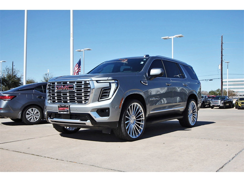 Central Houston Nissan is proud to present you with another True Market Priced Pre-Owned Vehicle. This 2025 GMC Yukon Denali is loaded with the following Factory Options: 4WD License Plate Front Mounting Package, Preferred Equipment Group 5SA (15" Diagonal Multi-Color Head-Up Display, 4-Way Power Driver Lumbar Seat Adjuster, 4-Way Power Front Passenger Lumbar Seat Adjuster, AutoSense Hands-Free Power Liftgate, Bright Front and Rear Door Sill Plates, Dual Exhaust System, Galvano Bodyside Moldings, Magnetic Ride Control Suspension, Perforated Heather and Ventilated Driver and Front Passenger Seats, Power Release 2nd Row Bucket Seats, Power Tilt and Telescopic Steering Column, and Wheels: 20" x 9" 6-Spoke Polished Aluminum), 4WD, 10 Speakers, 3.23 Rear Axle Ratio, 3rd row seats: split-bench, 4-Wheel Disc Brakes, ABS brakes, Adaptive suspension, Air Conditioning, Alloy wheels, AM/FM radio: SiriusXM with 360L, Apple CarPlay/Android Auto, Audio memory, Auto High-beam Headlights, Auto-dimming door mirrors, Auto-dimming Rear-View mirror, Auto-leveling suspension, Automatic temperature control, Bodyside moldings, Bose 10-Speaker Surround with CenterPoint, Brake assist, Bumpers: body-color, Compass, Delay-off headlights, Deleted OnStar Basics, Driver door bin, Driver vanity mirror, Dual front impact airbags, Dual front side impact airbags, Electronic Stability Control, Emergency communication system: OnStar and GMC connected services capable, Exterior Parking Camera Rear, Four wheel independent suspension, Front anti-roll bar, Front Bucket Seats, Front Center Armrest, Front dual zone A/C, Front fog lights, Front reading lights, Fully automatic headlights, Garage door transmitter, Heads-Up Display, Heated door mirrors, Heated Driver and Front Passenger Seats, Heated front seats, Heated rear seats, Heated steering wheel, Illuminated entry, Low tire pressure warning, Memory seat, Navigation system: GMC Connected Navigation, Occupant sensing airbag, Outside temperature display, Overhead airbag, Overhead console, Panic alarm, Passenger door bin, Passenger vanity mirror, Perforated Leather Seating Surfaces, Power door mirrors, Power driver seat, Power Liftgate, Power passenger seat, Power steering, Power windows, Radio: 16.8" Diagonal Premium GMC Infotainment System, Rain sensing wipers, Rear air conditioning, Rear anti-roll bar, Rear reading lights, Rear window defroster, Rear window wiper, Remote keyless entry, Security system, SiriusXM with 360L, Speed control, Speed-sensing steering, Split folding rear seat, Spoiler, Steering wheel memory, Steering wheel mounted audio controls, Tachometer, Telescoping steering wheel, Tilt steering wheel, Traction control, Trip computer, Turn signal indicator mirrors, Variably intermittent wipers, Ventilated front seats, and Voltmeter!!Central Houston Nissan is more than just your typical car dealership. When our customers visit us, our goal is to provide quality vehicles, exceptional service and a friendly atmosphere. Our staff has been trained to create ease during your purchase or service experience and we are always making sure you get everything you want and deserve out of your visit. Our vision and mission is an employee-centered and customer-focused environment. Vehicles may be subject to prep package and market adjustment. When you buy from Central Houston Nissan, we'll make it the best car buying experience you've ever had. When you purchase a New Nissan or a qualifying Pre-Owned vehicle from Central Houston Nissan, you are automatically enrolled into our Central Houston Nissan Central Care Program at no cost to you. You can’t beat that! Vehicles may be subject to prep package and market adjustment. Stop by 2901 S Loop W, Houston, Texas 77054 today!!!