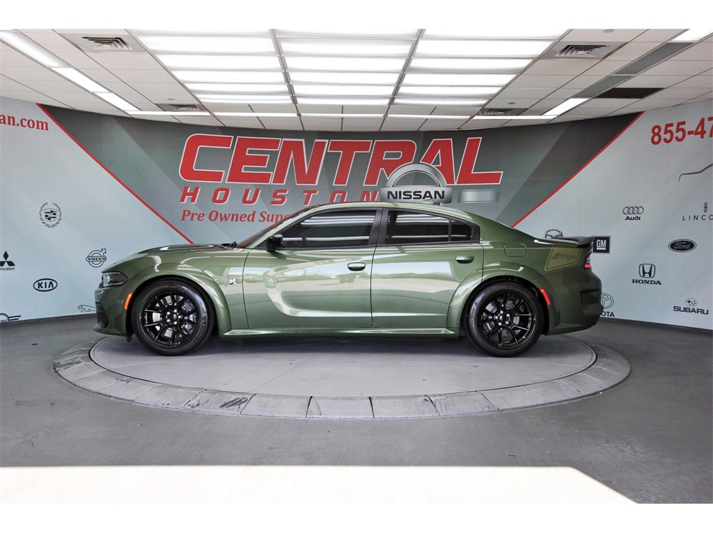 Central Houston Nissan is proud to present you with another True Market Priced Pre-Owned Vehicle. This 2023 Dodge Charger R/T Scat Pack Widebody is loaded with the following Factory Options: Black Cloth Navigation & Travel Group (1-Yr SiriusXM Guardian Trial, 2-Piece Shark Fin Antenna, 4G LTE Wi-Fi Hot Spot, 5-Year SiriusXM Traffic Service, 5-Year SiriusXM Travel Link Service, 8.4" Touchscreen Display, Apple CarPlay, Compass Gauge, For Details, Visit DriveUconnect.com, Google Android Auto, GPS Antenna Input, GPS Navigation, HD Radio, Integrated Center Stack Radio, Integrated Voice Command w/Bluetooth, Media Hub (2 USB, AUX), Radio: Uconnect 4C Nav w/8.4" Display, SiriusXM Traffic Plus, SiriusXM Travel Link, and USB Host Flip), Plus Group (Auto Adjust In Reverse Exterior Mirrors, Auto-Dimming Exterior Driver Mirror, Black-Edged Premium Floormats, Blind Spot & Cross Path Detection, Blind Spot Memory/Power/Heat Mirror, Driver & Passenger Lower LED Lamps, Exterior Mirrors Courtesy Lamps, Exterior Mirrors w/Heating Element, Front Overhead LED Lighting, Heated Front Seats, Power 2-Way Driver Lumbar Adjust, Power 2-Way Passenger Lumbar Adjust, Power Front Driver/Passenger Seats, Power Tilt/Telescope Steering Column, Premium-Stitched Dash Panel, Radio/Driver Seat/Mirrors Memory, Rear Armrest w/Cupholder Seat, Scat Pack Logo Nappa/Alcantara Seat, and Ventilated Front Seats), Quick Order Package 21V Scat Pack Widebody (All Speed Traction Control, Body Color Fender Flares, Brembo 6-Pot Fixed Front Caliper Brakes, Flat-Bottom Steering Wheel, Performance Shift Indicator, Wheels: 20" x 11" Carbon Black Aluminum, and Widebody Competition Suspension), Swinger Special Edition (Aluminum Interior Bezel w/Wood Look, Basil Green IP/Console/Door Stitching, Gold School Bee Fender Badge, Gold School Scat Pack/Bee Decklid Badge, Gold School Scat Pack/Bee Grille Badge, Nappa Alcantara Seat Trim w/Green Stitch, Rhombi 2-Pc Wheel Center Cap, Satin Black Dodge Tail Lamp Badge, Swinger Exterior Vinyl Graphics, Unique IP Badge, and Wheels: 20" x 11.0" Gold School), Technology Group (Adaptive Cruise Control w/Stop, Advanced Brake Assist, Auto High Beam Headlamp Control, Full Speed FWD Collision Warn Plus, Lane Departure Warning Plus, and Rain Sensitive Windshield Wipers), Widebody Package, Black Cloth, 4-Wheel Disc Brakes, 6 Speakers, ABS brakes, Adaptive Damping Suspension (DISC), Air Conditioning, Alloy wheels, AM/FM radio: SiriusXM, Anti-whiplash front head restraints, Apple CarPlay/Android Auto, Auto-dimming Rear-View mirror, Automatic temperature control, Brake assist, Bumpers: body-color, Cloth Performance Seats w/Heat, Compass, Delay-off headlights, Driver door bin, Driver vanity mirror, Dual front impact airbags, Dual front side impact airbags, Electronic Stability Control, Emergency communication system: SiriusXM Guardian, Four wheel independent suspension, Front anti-roll bar, Front Bucket Seats, Front Center Armrest, Front dual zone A/C, Front fog lights, Front reading lights, Fully automatic headlights, Garage door transmitter: HomeLink, Heated door mirrors, Heated front seats, Heated steering wheel, Illuminated entry, Knee airbag, Leather Shift Knob, Low tire pressure warning, Occupant sensing airbag, Outside temperature display, Overhead airbag, Overhead console, Panic alarm, ParkView Rear Back-Up Camera, Passenger door bin, Passenger vanity mirror, Power door mirrors, Power driver seat, Power steering, Power windows, Radio: Uconnect 4C w/8.4" Display, Rear anti-roll bar, Rear reading lights, Rear seat center armrest, Rear window defroster, Remote keyless entry, Security system, Speed control, Speed-Sensitive Wipers, Split folding rear seat, Spoiler, Sport steering wheel, Steering wheel mounted audio controls, Tachometer, Telescoping steering wheel, Tilt steering wheel, Traction control, Trip computer, Variably intermittent wipers, and Wheels: 20" x 9" Lo Gloss Granite Crystal!!Central Houston Nissan is more than just your typical car dealer