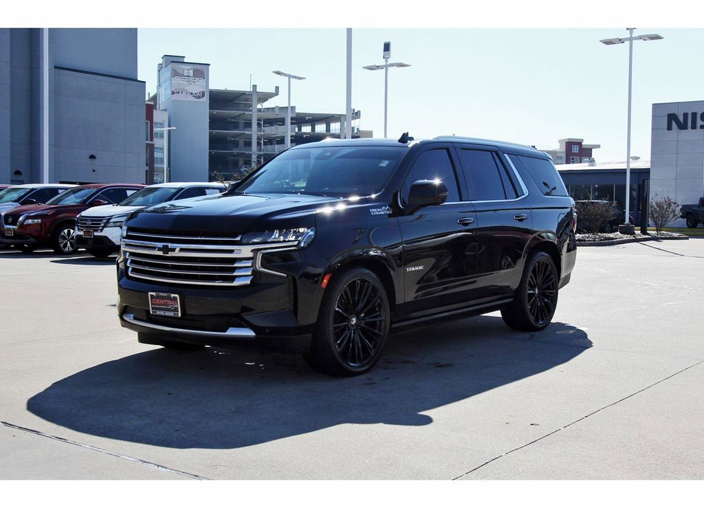 Central Houston Nissan is proud to present you with another True Market Priced Pre-Owned Vehicle. This 2024 Chevrolet Tahoe High Country is loaded with the following Factory Options: 4WD and Jet Black/Mocha Leather Advanced Trailering Package (Hitch View w/Pan/Zoom Image Adjustment, Integrated Trailer Brake Controller, Smart Trailer Integration Indicator, and Trailer Side Blind Zone Alert), High Country Deluxe (Air Ride Adaptive Suspension, Dual-Pane Power Panoramic Sunroof, and Power-Retractable Assist Steps), License Plate Front Mounting Package, Max Trailering Package (Extra Capacity Cooling System), Preferred Equipment Group 3LZ (15" Diagonal Multi-Color Head-Up Display, 1st & 2nd Row Color-Keyed Carpeted Floor Mats, 2-Speed Active Electronic AutoTrac Transfer Case, 3rd Row 60/40 Power-Folding Split-Bench Seat, Adaptive Cruise Control, Bose 10-Speaker Centerpoint Surround Audio Sys Ft, Bright Front & Rear Door Sill Plates, Chrome Door Handles w/Body-Color Strip, Color-Keyed Carpeting Floor Covering, Driver & Front Outboard Passenger Airbags, Dual Exhaust System, Enhanced Automatic Emergency Braking, Enhanced Driver Information Center, Floor Console, Hands-Free Rear Power Programmable Liftgate, HD Surround Vision, Heated 2nd Row Outboard Seats, Heated Steering Wheel, Hill Descent Control, Inside Rearview Auto-Dimming Rear Camera Mirror, Lane Change Alert w/Side Blind Zone Alert, LED Daytime Running Lamps, Memory Settings, Outside Heated Power-Adjustable Mirrors, Power Release 2nd Row Bucket Seats, Power Tilt & Telescopic Steering Column, Rear Camera Mirror Washer, Rear Cross Traffic Alert, Rear Pedestrian Alert, Remote Start, Safety Alert Seat, SiriusXM w/360L, Universal Home Remote, Wireless Charging, and Wrapped Steering Wheel), 4WD, Jet Black/Mocha Leather, 10 Speakers, 12-Way Power Driver & Passenger Seat Adjusters, 1st, 2nd & 3rd Rows All-Weather Floor Liners (LPO), 3.23 Rear Axle Ratio, 3rd row seats: split-bench, 4-Wheel Disc Brakes, ABS brakes, Adaptive suspension, Air Conditioning, Alloy wheels, AM/FM radio: SiriusXM with 360L, Apple CarPlay/Android Auto, Auto High-beam Headlights, Auto-dimming door mirrors, Auto-dimming Rear-View mirror, Auto-leveling suspension, Automatic temperature control, Brake assist, Bumpers: body-color, Compass, Delay-off headlights, Driver & Front Passenger Heated & Ventilated Seats, Driver door bin, Driver vanity mirror, Dual front impact airbags, Dual front side impact airbags, Electronic Stability Control, Emergency communication system: OnStar and Chevrolet connected services capable, Exterior Parking Camera Rear, Four wheel independent suspension, Front & Rear Black Bowtie Emblems (LPO), Front anti-roll bar, Front Bucket Seats, Front Center Armrest, Front dual zone A/C, Front High-Back Reclining Bucket Seats, Front reading lights, Fully automatic headlights, Garage door transmitter, Heads-Up Display, Heated door mirrors, Heated Driver & Front Passenger Seats, Heated front seats, Heated rear seats, Heated steering wheel, Illuminated entry, Infotainment Display, Low tire pressure warning, Magnetic Ride Control Suspension, Memory seat, Navigation System, Occupant sensing airbag, Outside temperature display, Overhead airbag, Overhead console, Panic alarm, Passenger door bin, Passenger vanity mirror, Perforated Leather Seat Trim, Power door mirrors, Power driver seat, Power Liftgate, Power passenger seat, Power steering, Power windows, Premium audio system: Chevrolet Infotainment 3 Premium, Radio: Chevrolet Infotainment 3 Premium System, Rain sensing wipers, Rear air conditioning, Rear anti-roll bar, Rear reading lights, Rear window defroster, Rear window wiper, Remote keyless entry, Roof rack: xxxxxx, Security system, Set of 4 Wheel Locks (LPO), Speed control, Speed-sensing steering, Split folding rear seat, Spoiler, Steering wheel memory, Steering wheel mounted audio controls, Tachometer, Telescoping steering wheel, Tilt steering wheel, Traction control, Trip computer, Turn signal indic