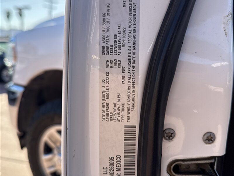 INSTALLED FEATURES: Air filtration, Front air conditioning, Front air conditioning zones: single, Rear vents: second row, Airbag deactivation: occupant sensing passenger, Front airbags: dual, Side airbags: front, Side curtain airbags: front / rear, Antenna type: mast, Auxiliary audio input: Bluetooth / jack / USB, Radio: AM/FM / touch screen display / voice operated, Radio data system, Speed sensitive volume control, Total speakers: 6, ABS: 4-wheel, Brake drying, Braking assist, Electronic brakeforce distribution, Emergency braking preparation, Front brake type: ventilated disc, Power brakes, Rear brake type: ventilated disc, Armrests: front center, Cargo area floor mat: rubber/vinyl, Dash trim: alloy, Door sill trim: scuff plate, Door trim: alloy, Floor mat material: rubber/vinyl, Floor material: carpet, Floor mats: front / rear, Steering wheel trim: urethane, Assist handle: front / rear, Cruise control, Cupholders: front, Multi-function remote: keyless entry / panic alarm, One-touch windows: 2, Overhead console: front, Power outlet(s): 12V front / USB front, Power steering, Power windows: lockout button, Push-button start, Reading lights: front, Rearview mirror: manual day/night, Steering wheel: tilt, Steering wheel mounted controls: cruise control / multi-function / phone / voice control, Storage: accessory hook / door pockets / under rear seats, Vanity mirrors: passenger illuminating, Active grille shutters, Door handle color: body-color, Front bumper color: chrome, Grille color: black / chrome surround, Headlight bezel color: chrome, Mirror color: black, Pickup bed light: tailgate illumination, Rear bumper color: chrome, Tailgate: power locking / removable, Window trim: black, Infotainment: Uconnect, Infotainment screen size: 8.4 in., Smartphone integration: wireless Android Auto / wireless Apple CarPlay, Clock, Compass, Digital odometer, External temperature display, Fuel economy display: MPG / range, Gauge: tachometer, Instrument cluster screen size: 3.5 in., Multi-function display, Powertrain hour meter, Trip odometer, Warnings and reminders: low fuel level / low oil level / maintenance due, Daytime running lights, Exterior entry lights: approach lamps / puddle lamps, Headlights: auto delay off / auto on/off / halogen / quad headlights, Side mirror adjustments: manual folding / manual telescoping / power, Side mirrors: heated / integrated turn signals, Towing mirrors, 4WD selector: electronic hi-lo, 4WD type: part time, Alternator: 180 amps, Auxiliary oil cooler, Auxiliary transmission fluid cooler, Battery: maintenance-free, Battery rating: 730 CCA, Battery saver, Emissions: 50 state, Limited slip differential: rear, Camera system: rearview, Child safety door locks, Child seat anchors: LATCH system, Crumple zones: front, Rearview monitor: in dash, Emergency locking retractors: front / rear, Front seatbelts: 3-point, Rear seatbelts: 3-point, Seatbelt force limiters: front, Seatbelt pretensioners: front, Seatbelt warning sensor: front, Driver seat manual adjustments: 4 / reclining, Front headrests: 2 / adjustable, Front seat type: 40-20-40 split bench, Passenger seat manual adjustments: 4 / reclining, Rear headrests: 3 / adjustable, Rear seat folding: folds up, Rear seat type: bench, Upholstery: cloth, Anti-theft system: vehicle immobilizer, Power door locks: auto-locking, Hill holder control, Roll stability control, Stability control, Traction control, Trailer stability control, Front shock type: gas, Front spring type: coil, Front stabilizer bar, Front suspension classification: solid live axle, Front suspension type: multi-link, Rear shock type: gas, Rear spring type: leaf, Rear suspension classification: solid live axle, Rear suspension type: multi-leaf, Suspension control: frequency selective, Electronic messaging assistance: voice operated / with read function, Hands-free phone call integration: voice operated, Smart device app compatibility: SiriusXM Guardian, Smart device app function: horn/light operation / lock operation / vehicle location, Wi-Fi: hotspot, Wireless data link: Bluetooth, Pickup bed cargo management: tie-down anchors, Tow hooks: front, Tow/Haul mode, Trailer brake controller, Trailer hitch: Class V, Trailer wiring: 4-pin / 7-pin, Spare tire mount location: underbody, Spare tire size: full-size, Spare wheel type: steel, Tire Pressure Monitoring System, Wheels: chrome clad, Front wipers: variable intermittent, Laminated glass: acoustic windshield, Power windows: safety reverse, Rear privacy glass, Solar-tinted glass