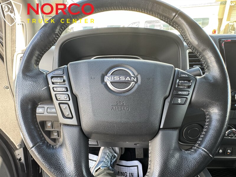 INSTALLED FEATURES: Air filtration, Front air conditioning, Front air conditioning zones: single, Rear vents: second row, Airbag deactivation: occupant sensing passenger, Front airbags: dual, Knee airbags: dual front, Side airbags: front, Side curtain airbags: front / rear, Antenna type: diversity / mast, Auxiliary audio input: Bluetooth / iPod/iPhone / jack / USB, Radio: AM/FM / touch screen display / voice operated, Radio data system, Satellite radio: SiriusXM, Speed sensitive volume control, Total speakers: 6, ABS: 4-wheel, Braking assist, Electronic brakeforce distribution, Front brake type: ventilated disc, Power brakes, Rear brake type: ventilated disc, Armrests: rear center with cupholders / rear folding, Floor material: carpet, Interior accents: metallic-tone, Shift knob trim: leather, Steering wheel trim: urethane, Assist handle: front / rear, Center console: front console with armrest and storage, Cruise control, Cupholders: front / rear, Multi-function remote: keyless entry / panic alarm, One-touch windows: 1, Overhead console: front, Power outlet(s): two 12V front / USB front / USB rear / USB-C front / USB-C rear, Power steering: variable/speed-proportional, Power windows: lockout button, Push-button start, Reading lights: front, Rearview mirror: manual day/night, Steering wheel: tilt, Steering wheel mounted controls: audio / cruise control / phone / voice control, Storage: door pockets / front seatback / under rear seats, Vanity mirrors: dual, Door handle color: body-color, Front bumper color: body-color, Grille color: silver, Mirror color: body-color, Pickup bed light, Rear bumper color: body-color, Skid plate(s): front, Tailgate: lift assist / removable, Window trim: black, Infotainment: NissanConnect, Infotainment screen size: 8 in., Smartphone integration: Android Auto / Apple CarPlay, Clock, Digital odometer, External temperature display, Fuel economy display: range, Gauge: oil pressure / tachometer / transmission temperature, Instrument cluster screen size: 7 in., Trip odometer, Warnings and reminders: coolant temperature warning / low fuel level / low oil pressure / maintenance due, Headlights: halogen, Taillights: LED, Side mirror adjustments: manual folding / power, Alternator: 180 amps / 185 amps, Automatic emergency braking: front / front pedestrian, Camera system: rearview, Check rear seat reminder, Child safety door locks, Child seat anchors: LATCH system, Crumple zones: front / rear, Driver attention alert system, Pre-collision warning system: audible warning / pedestrian detection / visual warning, Rearview monitor: in dash, Emergency locking retractors: front / rear, Front seatbelts: 3-point, Rear seatbelts: 3-point, Seatbelt force limiters: front, Seatbelt pretensioners: front / rear, Seatbelt warning sensor: front, Driver seat manual adjustments: lumbar, Driver seat power adjustments: 6 / height / reclining, Front headrests: 2 / adjustable, Front seat type: bucket, Passenger seat manual adjustments: 4 / reclining, Rear headrests: 2 / adjustable, Rear seat folding: split, Rear seat type: 60-40 split bench, Upholstery: premium cloth, Anti-theft system: alarm / vehicle immobilizer, Power door locks: anti-lockout / auto-locking, Hill holder control, Stability control, Traction control, Trailer stability control, Front shock type: twin-tube gas, Front spring type: coil, Front stabilizer bar: diameter 36 mm, Front struts, Front suspension classification: independent, Front suspension type: double wishbone, Rear shock type: twin-tube gas, Rear spring type: leaf, Rear stabilizer bar: diameter 25 mm, Rear suspension classification: solid live axle, Rear suspension type: multi-leaf, Electronic messaging assistance: voice operated / with read function, Hands-free phone call integration: voice operated, Smart device app compatibility: NissanConnect, Wireless data link: Bluetooth, Pickup bed cargo management: tie-down anchors, Spare tire mount location: underbody, Spare tire size: full-size, Spare wheel type: steel, Tire Pressure Monitoring System, Wheels: steel, Front wipers: variable intermittent, Pickup sliding rear window: manual, Power windows, Rear privacy glass