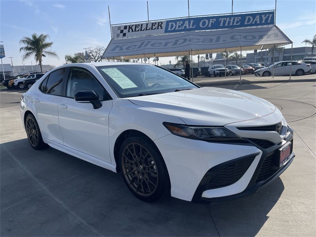 Apple CarPlay/Android Auto, Auto-Dimming Rear-View Mirror, Bumpers: body-color, Convenience Package, Delay-off headlights, Fully automatic headlights, HomeLink, Leather steering wheel, Nightshade Edition, Smart Key System w/Push Button Start, Traction control, Turn signal indicator mirrors, Wheels: 19" x 8.5J Alloy. 28/39 City/Highway MPG Wind Chill Pearl 2.5L I4 DOHC 16V 2024 Toyota Camry 4D Sedan FWD SE Nightshadewww.kellerdeal.com Excellent selection of Used Vehicles, Financing options, serving Hanford, Lemoore, Armona, Visalia, Tulare, Fresno, Goshen, Kings County, Tulare County, Fresno County, San Joaquin County, Bakersfield, Kern County. Price excludes government fees and taxes, dealer documentation fee of $85, and any emission testing charge.