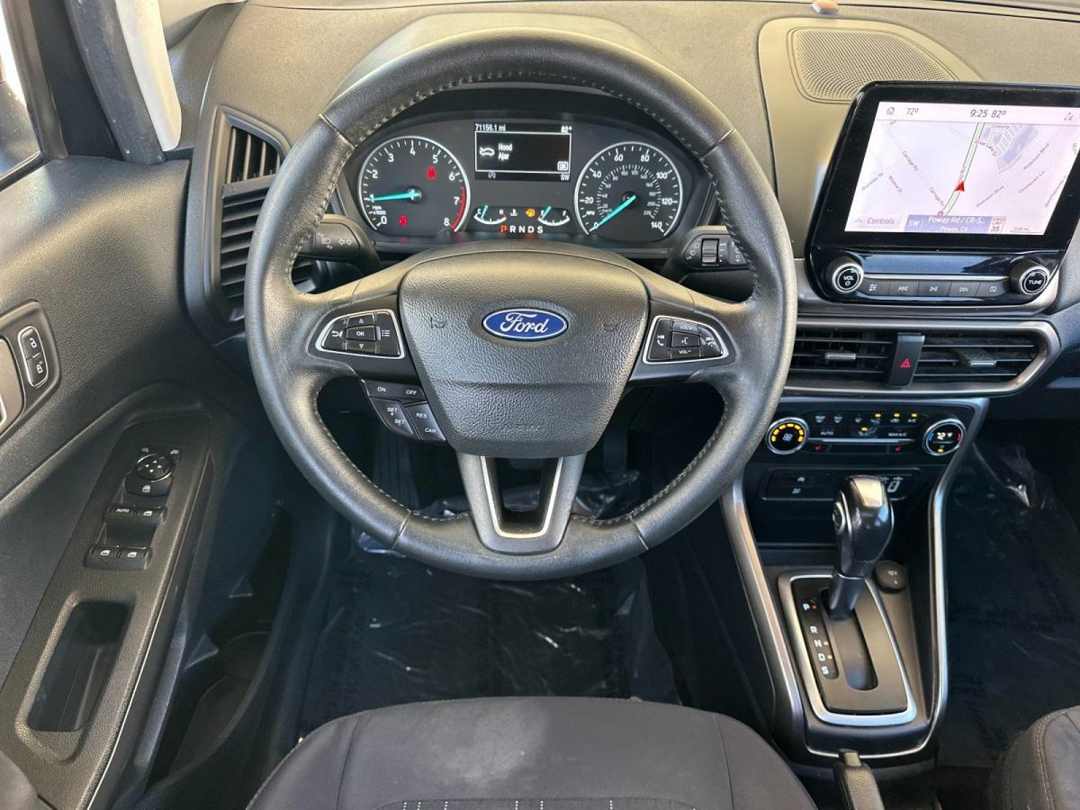 Discover the perfect blend of style, technology, and capability in this 2020 Ford EcoSport SE. This compact SUV is the ideal companion for your urban adventures, offering a refined and efficient driving experience that will elevate your daily commute.Highlighted features include:• SE Convenience Package with Blind Spot Information System, Cross-Traffic Alert, SYNC 3 Navigation, and Premium Sound System• Leather-wrapped steering wheel and shift knob• Ambient lighting for a touch of sophistication• Parking sensors to assist with tight maneuveringPowered by the turbocharged EcoBoost engine, this EcoSport delivers an impressive 27 city / 29 highway mpg, allowing you to go further on every tank. The smooth-shifting 6-speed automatic transmission and front-wheel drive provide a responsive and confident ride, whether you're navigating city streets or exploring the open road.Step inside and you'll be greeted by a well-appointed interior that seamlessly combines style and functionality. The unique cloth-upholstered heated front seats offer exceptional comfort, while the 60/40 split-folding rear seat provides versatility to accommodate your cargo needs. The SYNC 3 infotainment system with 8-inch touchscreen puts a world of connectivity and entertainment at your fingertips, including Apple CarPlay and Android Auto integration.Safety is also a top priority, with features like the Blind Spot Information System, Cross-Traffic Alert, and a comprehensive suite of airbags to give you peace of mind on every journey. The Rear Parking Sensors and Rearview Camera further enhance your awareness and control, making parking a breeze.This 2020 Ford EcoSport SE is a true standout in the compact SUV segment, blending a stylish design, advanced technology, and impressive efficiency. With low mileage and a clean CARFAX history, this one-owner vehicle is an exceptional value that deserves your attention. Experience the difference for yourself by scheduling a test drive today. We're confident you'll be impressed by the EcoSport's exceptional capabilities and features.