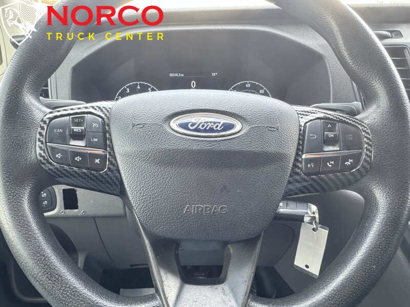 INSTALLED FEATURES: Front air conditioning, Front air conditioning zones: single, Airbag deactivation: passenger switch, Front airbags: dual, Side airbags: front, Side curtain airbags: front, Antenna type: mast, Auxiliary audio input: Bluetooth / USB, Radio: AM/FM, Total speakers: 4, ABS: 4-wheel, Braking assist, Cornering brake control, Electronic brakeforce distribution, Emergency braking preparation, Front brake type: ventilated disc, Power brakes, Rear brake type: ventilated disc, Armrests: dual front, Floor material: rubber/vinyl, Shift knob trim: urethane, Steering wheel trim: urethane, Assist handle: front / rear, Capless fuel filler system, Cargo area light, Center console: front console with storage, Cupholders: front, Multi-function remote: keyless entry / panic alarm / trunk release, Overhead console: front, Power outlet(s): 12V front, Power steering: variable/speed-proportional, Reading lights: front, Steering wheel: tilt and telescopic, Steering wheel mounted controls: audio / multi-function / phone, Storage: cargo tie-down anchors and hooks / door pockets, Sun visors, Body side moldings: black, Door handle color: black, Front bumper color: black, Grille color: black / black surround, Mirror color: black, Rear bumper color: black, Rear trunk/liftgate: barn, Side door type: passenger-side manual sliding, Window trim: black, Infotainment screen size: 4 in., Clock, Digital odometer, Gauge: tachometer, Trip odometer, Warnings and reminders: low fuel level, Headlights: auto high beam dimmer / halogen / wiper activated, Side mirror adjustments: manual folding / power, Alternator: 250 amps, Auxiliary transmission fluid cooler, Battery: maintenance-free, Battery rating: 610 CCA, OEM roof height: medium, Automatic emergency braking: front, Camera system: rearview, Driver attention alert system, Impact sensor: door unlock / post-collision safety system, Lane deviation sensors, Pre-collision warning system: audible warning / visual warning, Rearview monitor: in dash, Front seatbelts: 3-point, Driver seat manual adjustments: 2 / reclining, Front headrests: 2 / adjustable, Front seat type: bucket, Passenger seat manual adjustments: 2 / reclining, Upholstery: vinyl, Anti-theft system: vehicle immobilizer, Power door locks: auto-locking, Crosswind stabilization, Hill holder control, Roll stability control, Stability control, Traction control, Trailer stability control, Front shock type: gas, Front spring type: coil, Front stabilizer bar, Front struts: MacPherson, Front suspension classification: independent, Front suspension type: lower control arms, Rear shock type: gas, Rear spring type: leaf, Rear suspension classification: solid live axle, Rear suspension type: multi-leaf, Smart device app compatibility: FordPass Connect, Smart device app function: engine start / lock operation / maintenance status / vehicle location, Wi-Fi: hotspot, Wireless data link: Bluetooth, Spare tire mount location: underbody, Spare tire size: full-size, Spare wheel type: steel, Tire Pressure Monitoring System, Wheel covers: partial, Wheels: painted steel, Front wipers: rain sensing / variable intermittent, Power windows, Solar-tinted glass