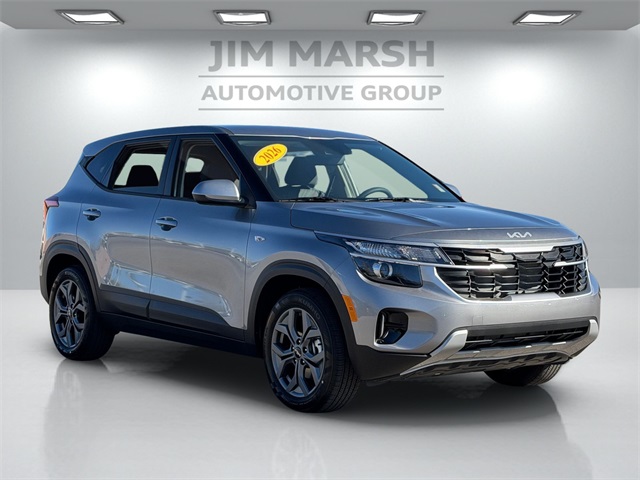 Recent Arrival!Odometer is 3553 miles below market average!28/34 City/Highway MPGSteel Gray 2026 Kia Seltos LX FWD CVT 2.0L I4 MPIIf you don't drive here, you can't save here!Price may not include recon fee. 4-Wheel Disc Brakes, 6 Speakers, ABS brakes, Air Conditioning, Alloy wheels, AM/FM radio, Apple CarPlay & Android Auto, Auto High-beam Headlights, Brake assist, Bumpers: body-color, Cargo Cover, Carpet Floor Mats, Cloth Seat Trim, Delay-off headlights, Driver door bin, Driver vanity mirror, Dual front impact airbags, Dual front side impact airbags, Electronic Stability Control, Exterior Parking Camera Rear, Front anti-roll bar, Front Bucket Seats, Front Center Armrest, Front reading lights, Front wheel independent suspension, Fully automatic headlights, Illuminated entry, Low tire pressure warning, Occupant sensing airbag, Outside temperature display, Overhead airbag, Overhead console, Panic alarm, Passenger door bin, Passenger vanity mirror, Power door mirrors, Power steering, Power windows, Radio: AM/FM Display Audio System, Rear window defroster, Rear window wiper, Remote keyless entry, Roadside Assistance Kit, Security system, Small First Aid Kit, Speed control, Speed-sensing steering, Split folding rear seat, Spoiler, Steering wheel mounted audio controls, Tachometer, Telescoping steering wheel, Tilt steering wheel, Traction control, Trip computer, Variably intermittent wipers, and Wheels: 17" Alloy with Dark Gray Finish.