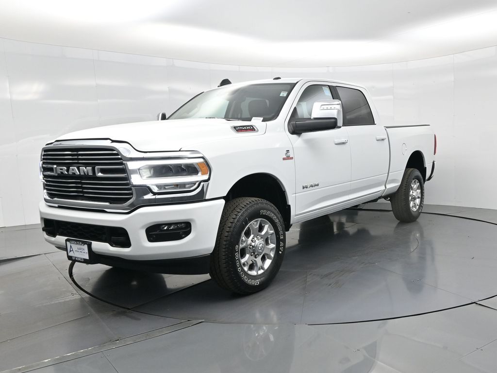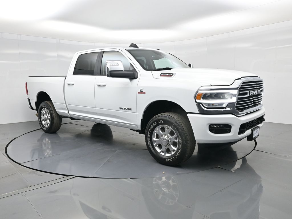 2024 Ram 2500 Laramie Crew Cab 4x4 with Customer Preferred Package 2HH, powered by the 6.7L Cummins Turbo Diesel, CARFAX 1-Owner, and just over 11,000 miles.This Ram 2500 brings together heavy-duty capability and premium refinement, pairing a confident 4x4 drivetrain with proven Cummins diesel performance for work, towing confidence, and long-distance comfort. Para la version en espanol, vea abajo.The Laramie trim delivers an upscale interior with leather seating, advanced touchscreen technology, power-adjustable front seats, and a well-designed cabin that supports both productivity and everyday driving comfort.With its spacious Crew Cab configuration, this truck offers ample room for passengers and gear, making it a great fit for work crews, family use, or drivers who want flexibility without sacrificing ride quality.CARFAX shows this as a 1-Owner vehicle with no accidents or damage reported, along with regular oil changes and recent service including differential fluid service, reflecting a well-maintained ownership history. Manufacturer warranty coverage may still apply.This truck has been thoroughly inspected and reconditioned. We emphasize a transparent buying process, knowledgeable staff, flexible financing options, and a no-pressure experience focused on customer satisfaction.Ready to see this vehicle up close? Contact us today to schedule a no-obligation test drive or virtual tour, and lets discuss financing options tailored to your needs. Our team is here to guide you every step of the way.2024 Ram 2500 Laramie Crew Cab 4x4 con el paquete Customer Preferred Package 2HH, equipada con el motor diesel Cummins Turbo de 6.7L, CARFAX de un solo dueno y apenas un poco mas de 11,000 millas.Esta Ram 2500 combina verdadera capacidad de trabajo pesado con traccion 4x4 y la potencia confiable del diesel Cummins, ideal para tareas exigentes o viajes largos en carretera.El nivel Laramie incluye asientos de piel, pantalla tactil avanzada, asientos delanteros electricos y un interior refinado que equilibra comodidad y fortaleza.La cabina Crew Cab ofrece amplio espacio para pasajeros y carga, perfecta para cuadrillas de trabajo, uso familiar o quienes necesitan versatilidad diaria.CARFAX indica que es un vehiculo de un solo dueno, sin accidentes ni danos reportados, con cambios de aceite regulares y servicio reciente del diferencial documentados. La garantia del fabricante aun puede aplicar.Este vehiculo ha sido inspeccionado y reacondicionado cuidadosamente. Ofrecemos un proceso transparente, opciones de financiamiento accesibles y un equipo comprometido en brindarte una experiencia clara y sin presion.Da el siguiente paso y mandanos un mensaje para solicitar mas informacion, agendar una visita o recibir una cotizacion personalizada. Estamos listos para ayudarte a comprar con total confianza.