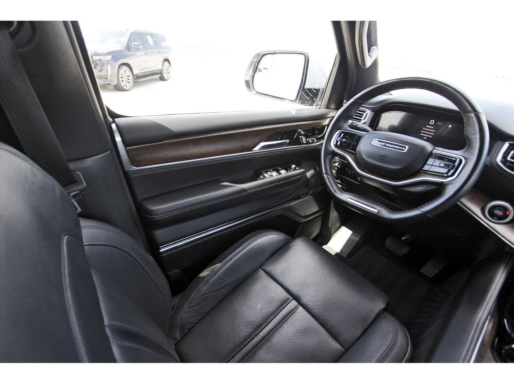 Central Houston Cadillac is proud to present you with another True Market Priced Pre-Owned Vehicle. This 2022 Jeep Grand Wagoneer Series I is loaded with the following Factory Options: Flexible Seating Group (2nd Row Dual Charge-Only USB Ports, 40/20/40 Power Recline Tip/Slide, and 8-Passenger Seating), Quick Order Package 28S, Two Tone Paint Group, 19 Speakers, 3.92 Rear Axle Ratio, 3rd row seats: bench, 4-Wheel Disc Brakes, ABS brakes, Adjustable pedals, Air Conditioning, Alloy wheels, AM/FM radio: SiriusXM with 360L, Anti-whiplash front head restraints, Audio memory, Auto High-beam Headlights, Auto-dimming door mirrors, Auto-dimming Rear-View mirror, Auto-leveling suspension, Automatic temperature control, Body Color Roof, Brake assist, Bumpers: body-color, Compass, Delay-off headlights, Driver door bin, Driver vanity mirror, Driver's Seat Mounted Armrest, Dual front impact airbags, Dual front side impact airbags, Electronic Stability Control, Four wheel independent suspension, Front anti-roll bar, Front Bucket Seats, Front Center Armrest w/Storage, Front dual zone A/C, Front fog lights, Front reading lights, Fully automatic headlights, Garage door transmitter, Genuine wood console insert, Genuine wood dashboard insert, Genuine wood door panel insert, Heads-Up Display, Heated door mirrors, Heated front seats, Heated rear seats, Heated steering wheel, Illuminated entry, Knee airbag, Leather steering wheel, Leather Trimmed Bucket Seats, Low tire pressure warning, Memory seat, Navigation System, Normal Duty Suspension, Occupant sensing airbag, Outside temperature display, Overhead airbag, Overhead console, Panic alarm, Passenger door bin, Passenger seat mounted armrest, Passenger vanity mirror, Pedal memory, Power adjustable front head restraints, Power door mirrors, Power driver seat, Power Liftgate, Power moonroof, Power passenger seat, Power steering, Power windows, Radio data system, Radio: Uconnect 5 Nav w/12.0" Display, Rain sensing wipers, Rear air conditioning, Rear anti-roll bar, Rear dual zone A/C, Rear reading lights, Rear seat center armrest, Rear window defroster, Rear window wiper, Reclining 3rd row seat, Remote keyless entry, Security system, Speed control, Speed-sensing steering, Speed-Sensitive Wipers, Split folding rear seat, Steering wheel memory, Steering wheel mounted audio controls, Tachometer, Telescoping steering wheel, Tilt steering wheel, Traction control, Trip computer, Turn signal indicator mirrors, Variably intermittent wipers, Ventilated front seats, Voltmeter, and Wheels: 20" x 9.0" Premium 3 Aluminum!!Vehicle pricing includes all offers and incentives. Prices are subject to the addition of tax, title, license, fees, and dealer adds. Due to current market volatility, we are pricing and advertising our vehicles immediately following acquisition. All preowned vehicles are reconditioned to make ready for retail sale unless otherwise stated. Residency restrictions may apply. All vehicles come equipped with Cadillac Care. Please see dealer for details and vehicle availability. The team at Central Houston Cadillac would like to welcome you to our dealership on Loop 610 South near NRG Stadium, where we're confident you'll find the vehicles, you're looking for at a price you can afford. Come and check out our full selection of New Cadillac vehicles, or get a great value on a reliable pre-owned model. No matter which vehicle you decide on, our professional finance team will help you get settled with a competitive financing or lease plan.