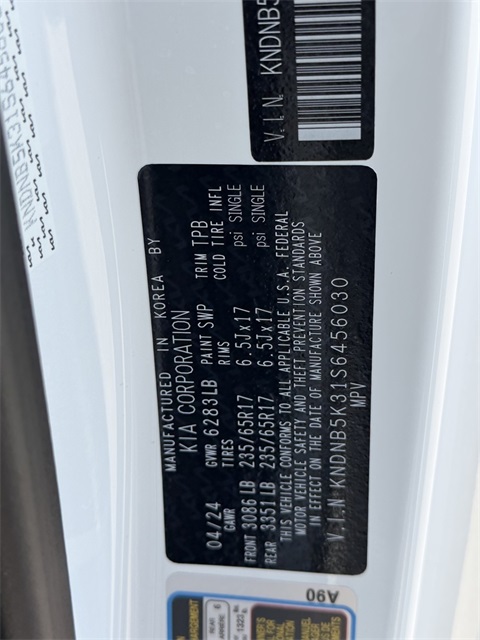 Priced below KBB Fair Purchase Price!Odometer is 16399 miles below market average!18/26 City/Highway MPGSnow White Pearl 2025 Kia Carnival LXS FWD 8-Speed Automatic V6If you don't drive here, you can't save here!Price may not include recon fee. 3.51 Axle Ratio, 3rd row seats: split-bench, 4-Wheel Disc Brakes, 6 Speakers, 6.5J x 17" Alloy Wheels, ABS brakes, Air Conditioning, Alloy wheels, AM/FM radio: SiriusXM, Apple CarPlay & Android Auto, Artificial Leather Seat Trim, Auto High-beam Headlights, Automatic temperature control, Brake assist, Bumpers: body-color, Carpeted Floor Mats (8-Passenger), Compass, Delay-off headlights, Driver door bin, Driver vanity mirror, Dual front impact airbags, Dual front side impact airbags, Electronic Stability Control, Emergency communication system, Exterior Parking Camera Rear, Four wheel independent suspension, Front anti-roll bar, Front Bucket Seats, Front Center Armrest, Front dual zone A/C, Front reading lights, Fully automatic headlights, Heated door mirrors, Heated Front Bucket Seats, Heated front seats, Illuminated entry, Knee airbag, Leather Shift Knob, Leather steering wheel, Low tire pressure warning, Navigation system: AVN 5.0 Navigation System, Occupant sensing airbag, Outside temperature display, Overhead airbag, Overhead console, Panic alarm, Passenger door bin, Passenger vanity mirror, Power door mirrors, Power driver seat, Power steering, Power windows, Radio: AM/FM/HD Audio System, Rear air conditioning, Rear anti-roll bar, Rear reading lights, Rear window defroster, Rear window wiper, Reclining 3rd row seat, Remote keyless entry, Security system, Speed control, Speed-sensing steering, Split folding rear seat, Spoiler, Steering wheel mounted audio controls, Tachometer, Telescoping steering wheel, Tilt steering wheel, Traction control, Trip computer, Turn signal indicator mirrors, and Variably intermittent wipers.