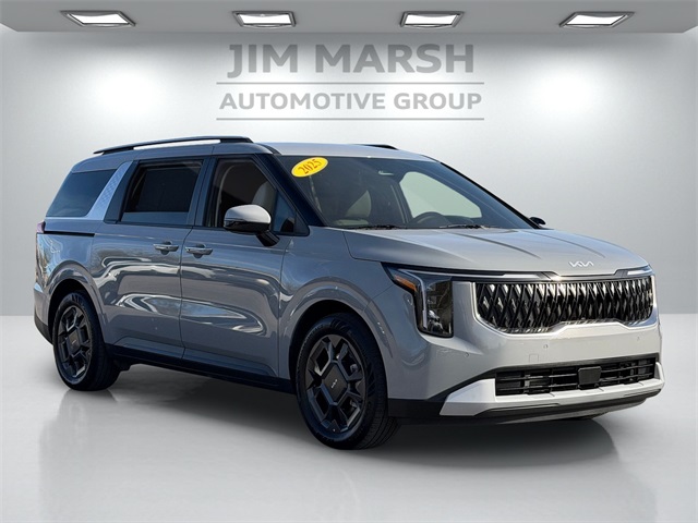 Priced below KBB Fair Purchase Price!34/31 City/Highway MPGCeramic Silver 2025 Kia Carnival Hybrid EX FWD 6-Speed Automatic 1.6L I4 DGI Hybrid Turbocharged DOHC 16V LEV3-SULEV30 1.6L I4 DGI Hybrid Turbocharged DOHC 16V LEV3-SULEV30.If you don't drive here, you can't save here!Price may not include recon fee. 1.6L I4 DGI Hybrid Turbocharged DOHC 16V LEV3-SULEV30, 3rd row seats: split-bench, 4-Wheel Disc Brakes, 8 Speakers, ABS brakes, Air Conditioning, Alloy wheels, AM/FM radio: SiriusXM, Apple CarPlay & Android Auto, Artificial Leather Seat Trim, Auto High-beam Headlights, Automatic temperature control, Brake assist, Bumpers: body-color, Cargo Tray, Carpeted Floor Mats (8-Passenger), Compass, Delay-off headlights, Driver door bin, Driver vanity mirror, Dual front impact airbags, Dual front side impact airbags, Electronic Stability Control, Emergency communication system, Exterior Parking Camera Rear, Four wheel independent suspension, Front anti-roll bar, Front Bucket Seats, Front Center Armrest, Front dual zone A/C, Front reading lights, Fully automatic headlights, Heated door mirrors, Heated Front Bucket Seats, Heated front seats, Illuminated entry, Knee airbag, Leather Shift Knob, Leather steering wheel, Low tire pressure warning, Memory seat, Navigation system: AVN 5.0 Navigation System, Occupant sensing airbag, Outside temperature display, Overhead airbag, Overhead console, Panic alarm, Passenger door bin, Passenger vanity mirror, Power door mirrors, Power driver seat, Power Liftgate, Power passenger seat, Power steering, Power windows, Radio: AVN 5.0 Navigation System w/SiriusXM, Rear air conditioning, Rear anti-roll bar, Rear reading lights, Rear window defroster, Rear window wiper, Reclining 3rd row seat, Remote keyless entry, Security system, Speed control, Speed-sensing steering, Split folding rear seat, Spoiler, Steering wheel mounted audio controls, Tachometer, Telescoping steering wheel, Tilt steering wheel, Traction control, Trailer Prewire Harness, Trip computer, Turn signal indicator mirrors, Variably intermittent wipers, and Wheels: 7.5J x 19" Alloy.