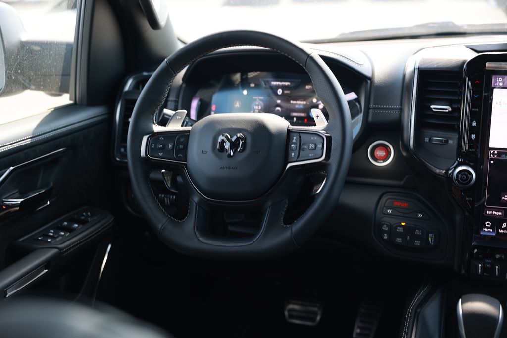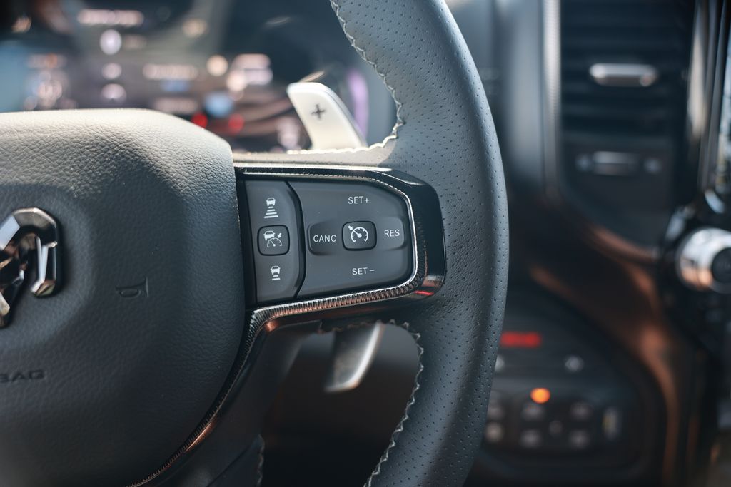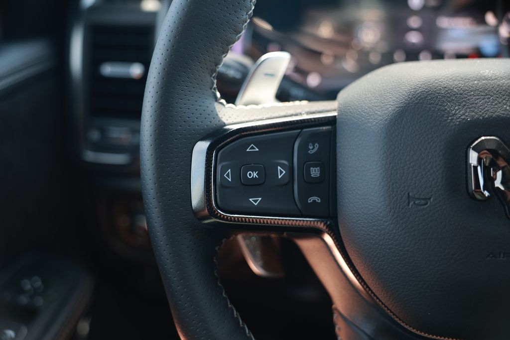 Discover the ultimate driving experience with this exceptional 2026 Ram 1500 RHO. Meticulously crafted to deliver unparalleled power, comfort, and technology, this truck is the perfect companion for your adventures.Boasting a robust 3.0L I6 engine paired with an 8-Speed Automatic transmission and 4WD, this Ram 1500 RHO is engineered to conquer any terrain with confidence. Indulge in the convenience of GPS Navigation, the intuitive Uconnect 5 infotainment system with a 12.0" display, and a host of premium features that elevate your driving experience:- GPS Navigation- Navigation System- Quick Order Package 22Y RHO- 10 Speakers- HD Radio- Integrated Center Stack Radio- Adaptive Suspension- Flareside Box- Auto High-beam Headlights- Auto-Dimming Exterior Driver Mirror- Heated Steering Wheel- Leather Trimmed Bucket Seats- Power Passenger Seat- Alloy WheelsStep inside and be enveloped in the luxurious cabin, featuring plush Leather Trimmed Bucket Seats, a Heated Steering Wheel, and a Power Passenger Seat for unmatched comfort. The Adaptive Suspension and Flareside Box further enhance the versatility of this exceptional truck, making it the perfect companion for both work and play.Designed with your safety in mind, the 2026 Ram 1500 RHO boasts a suite of advanced safety features, including ABS Brakes, Dual Front Impact Airbags, Dual Front Side Impact Airbags, and Electronic Stability Control, ensuring your peace of mind on every journey.With its striking Black exterior and exceptional performance, this 2026 Ram 1500 RHO is a true testament to the brand's commitment to excellence. Experience the power, comfort, and technology that set this truck apart from the rest. Schedule a test drive today and discover the ultimate driving experience.
