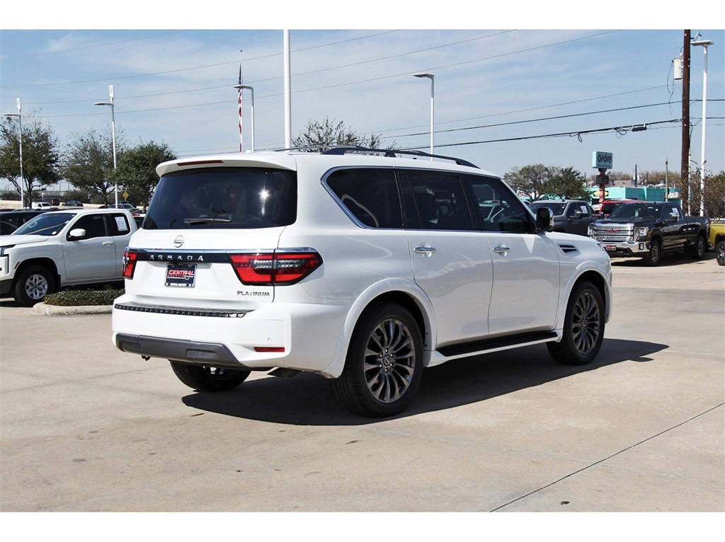 Central Houston Nissan is proud to present you with another True Market Priced Pre-Owned Vehicle. This 2023 Nissan Armada Platinum is loaded with the following Factory Options: Captain's Chairs Package (2nd Row Captain's Chairs and 2nd Row Center Console w/Padded Armrest), Cargo Package, 13 Speakers, 2.94 Axle Ratio, 3rd Row Carpeted Floor Mats - Captain Seat, 3rd row seats: split-bench, 4-Wheel Disc Brakes, A/V remote, ABS brakes, Air Conditioning, Alloy wheels, AM/FM radio: SiriusXM, Anti-whiplash front head restraints, Auto High-beam Headlights, Auto tilt-away steering wheel, Auto-dimming door mirrors, Auto-dimming Rear-View mirror, Auto-leveling suspension, Automatic temperature control, Bose 13-Speaker Premium Audio System, Brake assist, Bumpers: body-color, Climate-Controlled Front Bucket Seats, Cross Bars, Dash Cam - Dual Camera Drive Recorder, Delay-off headlights, Driver door bin, Driver vanity mirror, Dual front impact airbags, Dual front side impact airbags, Electronic Stability Control, Emergency communication system: NissanConnect Services, Exterior Parking Camera Rear, Four wheel independent suspension, Front anti-roll bar, Front Bucket Seats, Front Center Armrest, Front dual zone A/C, Front fog lights, Front reading lights, Fully automatic headlights, Garage door transmitter: HomeLink, Headphones, Heated door mirrors, Heated front seats, Heated rear seats, Heated steering wheel, Illuminated entry, Illuminated Kick Plates, Illuminated Scuff Plate, Knee airbag, Leather Shift Knob, Low tire pressure warning, Memory seat, Navigation System, Nissan USB Charging Cable Set, NissanConnect featuring Apple CarPlay and Android Auto, Occupant sensing airbag, Outside temperature display, Overhead airbag, Overhead console, Panic alarm, Passenger door bin, Passenger vanity mirror, Power door mirrors, Power driver seat, Power Liftgate, Power moonroof, Power passenger seat, Power steering, Power windows, Premium audio system: Bose, Quilted Leather Seat Trim, Radio: NissanConnect w/SiriusXM, Rain sensing wipers, Rear air conditioning, Rear anti-roll bar, Rear reading lights, Rear seat center armrest, Rear window defroster, Rear window wiper, Rear-Seat Entertainment, Reclining 3rd row seat, Remote keyless entry, Security system, Speed control, Speed-sensing steering, Speed-Sensitive Wipers, Split folding rear seat, Spoiler, Steering wheel memory, Steering wheel mounted audio controls, Tachometer, Telescoping steering wheel, Tilt steering wheel, Traction control, Trip computer, Turn signal indicator mirrors, Variably intermittent wipers, Ventilated front seats, Voltmeter, Welcome Lighting, and Wheels: 22" x 8J Machine-Faced w/Tinted Clear Coat!!Central Houston Nissan is more than just your typical car dealership. When our customers visit us, our goal is to provide quality vehicles, exceptional service and a friendly atmosphere. Our staff has been trained to create ease during your purchase or service experience and we are always making sure you get everything you want and deserve out of your visit. Our vision and mission is an employee-centered and customer-focused environment. Vehicles may be subject to prep package and market adjustment. When you buy from Central Houston Nissan, we'll make it the best car buying experience you've ever had. When you purchase a New Nissan or a qualifying Pre-Owned vehicle from Central Houston Nissan, you are automatically enrolled into our Central Houston Nissan Central Care Program at no cost to you. You can’t beat that! Vehicles may be subject to prep package and market adjustment. Stop by 2901 S Loop W, Houston, Texas 77054 today!!!