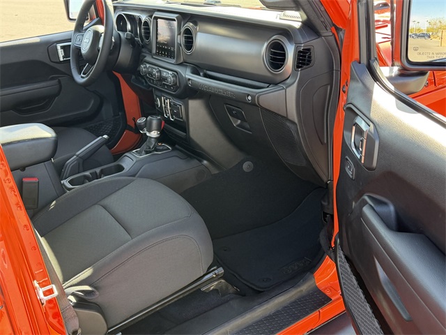 CARFAX One-Owner.Priced below KBB Fair Purchase Price!Odometer is 11003 miles below market average!Punkn Metallic Clearcoat 2023 Jeep Wrangler Sport S 4WD 8-Speed Automatic 3.6L V6 24V VVTIf you don't drive here, you can't save here!Price may not include recon fee. 8.4" Radio & Premium Audio Group (1-Year SiriusXM Guardian Trial, 220 Amp Alternator, 4G LTE Wi-Fi Hot Spot, 5-Year SiriusXM Traffic Service, 5-Year SiriusXM Travel Link Service, 8.4" Touchscreen Display, Alpine Premium Audio System, Apple CarPlay, Auto-Dimming Rear-View Mirror, Emergency/Assistance Call, Google Android Auto, GPS Antenna Input, GPS Navigation, HD Radio, Integrated Center Stack Radio, Integrated Voice Command w/Bluetooth, Off-Road Info Pages, Radio: Uconnect 4C Nav w/8.4" Display, SiriusXM Satellite Radio, SiriusXM Traffic Plus, SiriusXM Travel Link, and USB Host Flip), Quick Order Package 25S Sport S (Automatic Headlamps, Deep Tint Sunscreen Windows, Front 1-Touch Down Power Windows, Power Heated Mirrors, Premium Wrapped Steering Wheel, Remote Keyless Entry, Security Alarm, Speed Sensitive Power Locks, Sport S, Sun Visors w/Illuminated Vanity Mirrors, and Wheels: 17" x 7.5 Tech Silver Aluminum), Technology Group (2-Door Passive Entry, Front Door Locks, Air Conditioning w/Auto Temperature Control, Air Filtering, and Cluster 7.0" TFT Color Display), 3.45 Overall Top Gear Ratio, 4-Wheel Disc Brakes, 8 Speakers, ABS brakes, Air Conditioning, AM/FM radio, Apple CarPlay/Android Auto, Aux Battery, Black 3-Piece Hard Top, Brake assist, Cloth Low-Back Bucket Seats, Compass, Delay-off headlights, Driver door bin, Driver vanity mirror, Dual front impact airbags, Dual front side impact airbags, Electronic Stability Control, Emergency communication system: SiriusXM Guardian, Engine Oil Cooler, Freedom Panel Storage Bag, Front anti-roll bar, Front Bucket Seats, Front Center Armrest w/Storage, Front fog lights, Front reading lights, Integrated roll-over protection, Low tire pressure warning, No Soft Top, Non-Lock Fuel Cap w/o Discriminator, Normal Duty Suspension, Occupant sensing airbag, Outside temperature display, ParkView Rear Back-Up Camera, Passenger door bin, Passenger vanity mirror, Power steering, Radio data system, Radio: Uconnect 4 w/7" Display, Rear anti-roll bar, Rear reading lights, Rear Window Defroster, Rear Window Wiper/Washer, Speed control, Split folding rear seat, Steering wheel mounted audio controls, Stop-Start Dual Battery System, Tachometer, Telescoping steering wheel, Tilt steering wheel, Traction control, Trip computer, Variably intermittent wipers, and Wheels: 17" x 7.5" Black Steel Styled.