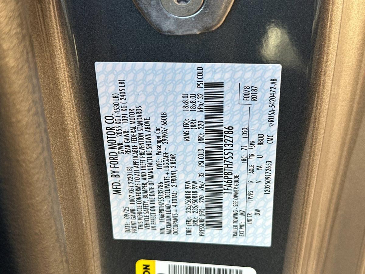 The 2025 Ford Mustang EcoBoost is a remarkable sports car that combines power, style, and advanced technology. With its sleek Gray exterior and efficient EcoBoost 2.3L I4 engine, this Mustang delivers an exhilarating driving experience that's sure to captivate any enthusiast.• 10-Speed Automatic Transmission• Rear-Wheel Drive• 21 City / 32 Highway MPG• 6 Speakers• AM/FM Radio• Air Conditioning• Dual-Zone Climate Control• Power Windows and Locks• Remote Keyless Entry• Steering Wheel-Mounted Audio Controls• 4-Wheel Independent Suspension• 4-Wheel Disc Brakes with ABS• Dual Front and Side Impact Airbags• 911 Assist Emergency Communication System• Rear Parking Sensors• Auto High-Beam HeadlightsThis Mustang EcoBoost is more than just a thrilling sports car; it's a well-equipped and practical daily driver. The spacious cabin, split-folding rear seats, and generous cargo space make it versatile enough to handle your everyday needs. And with features like SYNC 4 infotainment, a rearview camera, and rain-sensing wipers, you'll enjoy a seamless and convenient driving experience.Beneath the sleek exterior lies a heart of pure performance. The turbocharged EcoBoost engine delivers a potent 310 horsepower, allowing you to accelerate with authority and tackle winding roads with confidence. The 10-speed automatic transmission provides smooth, responsive shifts, ensuring you're always in the perfect gear for the task at hand.But the 2025 Ford Mustang EcoBoost is more than just raw power; it's also a testament to style and sophistication. The distinctive Mustang silhouette is complemented by 18-inch machined-face aluminum wheels, giving this sports car a bold, modern look that's sure to turn heads wherever you go.Whether you're seeking an exhilarating daily driver or a weekend warrior, the 2025 Ford Mustang EcoBoost is the perfect choice. With its impressive performance, comprehensive features, and striking good looks, this Mustang is a true standout in the sports car segment. We invite you to visit our showroom and experience the thrill of driving this remarkable vehicle for yourself.