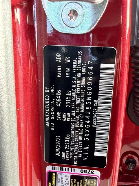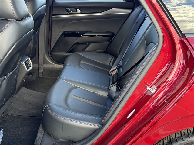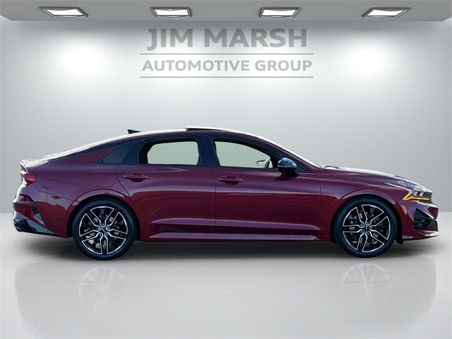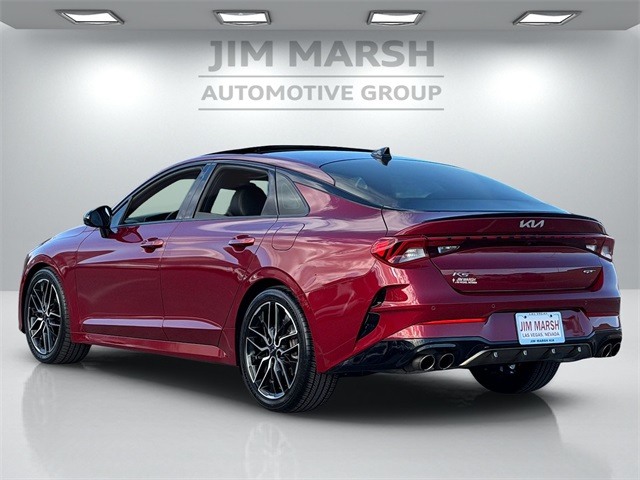 CARFAX One-Owner.Odometer is 20834 miles below market average!24/32 City/Highway MPGPassion Red 2022 Kia K5 GT FWD 8 Speed Dual Clutch I4If you don't drive here, you can't save here!Price may not include recon fee. GT1 Package (10-Way Power Passenger Seat, Active Sound Design, Auto Up/Down Rear Windows, Bose Premium Audio, Heated Steering Wheel, Leather-Wrapped Gear Shift Knob, LED Projection Headlights, Memory Driver's Seat & Outside Mirrors, Navigation-Based Smart Cruise Control - Curve, Parking Collision Avoidance-Assist - Reverse, Parking Distance Warning - Forward & Reverse, Power Child Lock, Power Folding Outside Mirrors, Safe Exit Assist w/Lock, Surround View Monitor, and Ventilated Front Seats), 4-Wheel Disc Brakes, 6 Speakers, ABS brakes, Air Conditioning, Alloy wheels, AM/FM radio: SiriusXM, Apple CarPlay & Android Auto, Auto High-beam Headlights, Automatic temperature control, Brake assist, Bumpers: body-color, Cargo Mat, Cargo Net, Carpeted Floor Mats, Delay-off headlights, Driver door bin, Driver vanity mirror, Dual front impact airbags, Dual front side impact airbags, Electronic Stability Control, Emergency communication system: UVO eServices, Four wheel independent suspension, Front anti-roll bar, Front Bucket Seats, Front Center Armrest, Front dual zone A/C, Front fog lights, Front reading lights, Fully automatic headlights, Heated door mirrors, Heated front seats, Heated Sport Bucket Seats, Illuminated entry, Knee airbag, Leatherette Seat Trim, Low tire pressure warning, Navigation System, Occupant sensing airbag, Outside temperature display, Overhead airbag, Overhead console, Panic alarm, Passenger door bin, Passenger vanity mirror, Power door mirrors, Power driver seat, Power moonroof, Power steering, Power windows, Radio data system, Radio: AM/FM/MP3 Audio System, Rear anti-roll bar, Rear reading lights, Rear seat center armrest, Rear side impact airbag, Rear window defroster, Remote keyless entry, Security system, Smart Key w/ Push Button and Remote Start, Speed control, Speed-sensing steering, Split folding rear seat, Spoiler, Sport steering wheel, Steering wheel mounted audio controls, Tachometer, Telescoping steering wheel, Tilt steering wheel, Traction control, Trip computer, Turn signal indicator mirrors, Variably intermittent wipers, and Wheels: 8.0J x 19" Gloss Black Machined Finish Alloy.