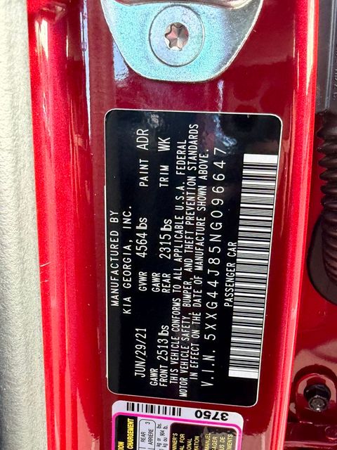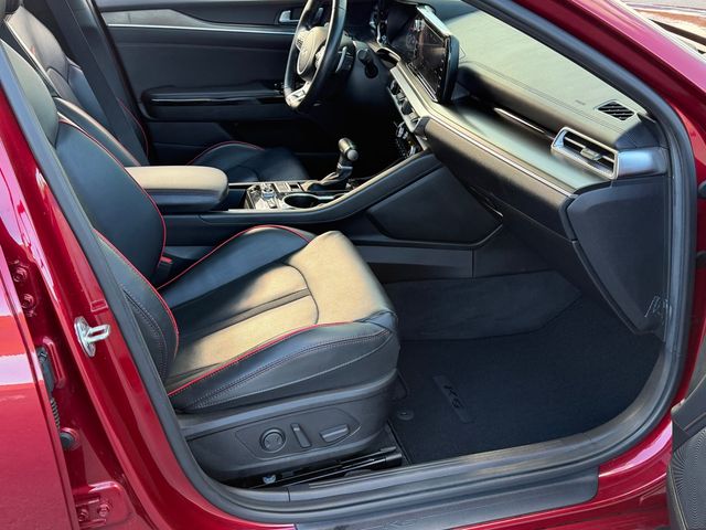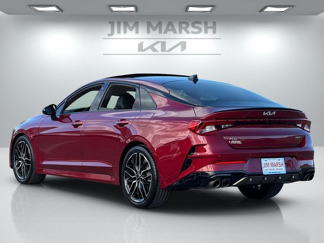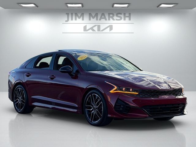 CARFAX One-Owner.Priced below KBB Fair Purchase Price!Odometer is 13727 miles below market average!24/32 City/Highway MPGPassion Red 2022 Kia K5 GT FWD 8 Speed Dual Clutch I4If you don't drive here, you can't save here!Price may not include recon fee. GT1 Package (10-Way Power Passenger Seat, Active Sound Design, Auto Up/Down Rear Windows, Bose Premium Audio, Heated Steering Wheel, Leather-Wrapped Gear Shift Knob, LED Projection Headlights, Memory Driver's Seat & Outside Mirrors, Navigation-Based Smart Cruise Control - Curve, Parking Collision Avoidance-Assist - Reverse, Parking Distance Warning - Forward & Reverse, Power Child Lock, Power Folding Outside Mirrors, Safe Exit Assist w/Lock, Surround View Monitor, and Ventilated Front Seats), 4-Wheel Disc Brakes, 6 Speakers, ABS brakes, Air Conditioning, Alloy wheels, AM/FM radio: SiriusXM, Apple CarPlay & Android Auto, Auto High-beam Headlights, Automatic temperature control, Brake assist, Bumpers: body-color, Cargo Mat, Cargo Net, Carpeted Floor Mats, Delay-off headlights, Driver door bin, Driver vanity mirror, Dual front impact airbags, Dual front side impact airbags, Electronic Stability Control, Emergency communication system: UVO eServices, Four wheel independent suspension, Front anti-roll bar, Front Bucket Seats, Front Center Armrest, Front dual zone A/C, Front fog lights, Front reading lights, Fully automatic headlights, Heated door mirrors, Heated front seats, Heated Sport Bucket Seats, Illuminated entry, Knee airbag, Leatherette Seat Trim, Low tire pressure warning, Navigation System, Occupant sensing airbag, Outside temperature display, Overhead airbag, Overhead console, Panic alarm, Passenger door bin, Passenger vanity mirror, Power door mirrors, Power driver seat, Power moonroof, Power steering, Power windows, Radio data system, Radio: AM/FM/MP3 Audio System, Rear anti-roll bar, Rear reading lights, Rear seat center armrest, Rear side impact airbag, Rear window defroster, Remote keyless entry, Security system, Smart Key w/ Push Button and Remote Start, Speed control, Speed-sensing steering, Split folding rear seat, Spoiler, Sport steering wheel, Steering wheel mounted audio controls, Tachometer, Telescoping steering wheel, Tilt steering wheel, Traction control, Trip computer, Turn signal indicator mirrors, Variably intermittent wipers, and Wheels: 8.0J x 19" Gloss Black Machined Finish Alloy.