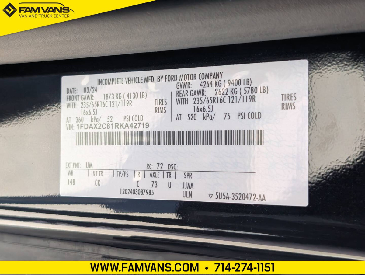 Here at FAM Vans we have over 350 vans and trucks in stock at any given time, plus we get fresh inventory every month. We can modify any vehicle to fit your needs or find the right one that fits your budget! Full Parts and Service departments. -LWB / 148-in WB -GVWR: 9,400 LBS -Includes backup camera -Dimensions: 235.5 L x 97.4 W x 99.2 H