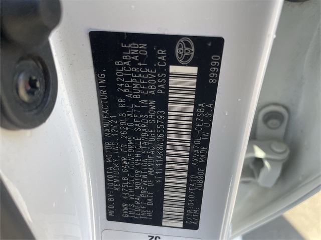 Odometer is 31027 miles below market average! 28/39 City/Highway MPG White 2.5L I4 DOHC 16V 2022 Toyota Camry 4D Sedan FWD SEwww.kellerdeal.com Excellent selection of Used Vehicles, Financing options, serving Hanford, Lemoore, Armona, Visalia, Tulare, Fresno, Goshen, Kings County, Tulare County, Fresno County, San Joaquin County, Bakersfield, Kern County. Price excludes government fees and taxes, dealer documentation fee of $85, and any emission testing charge.