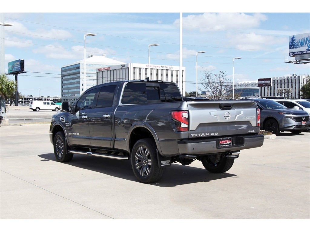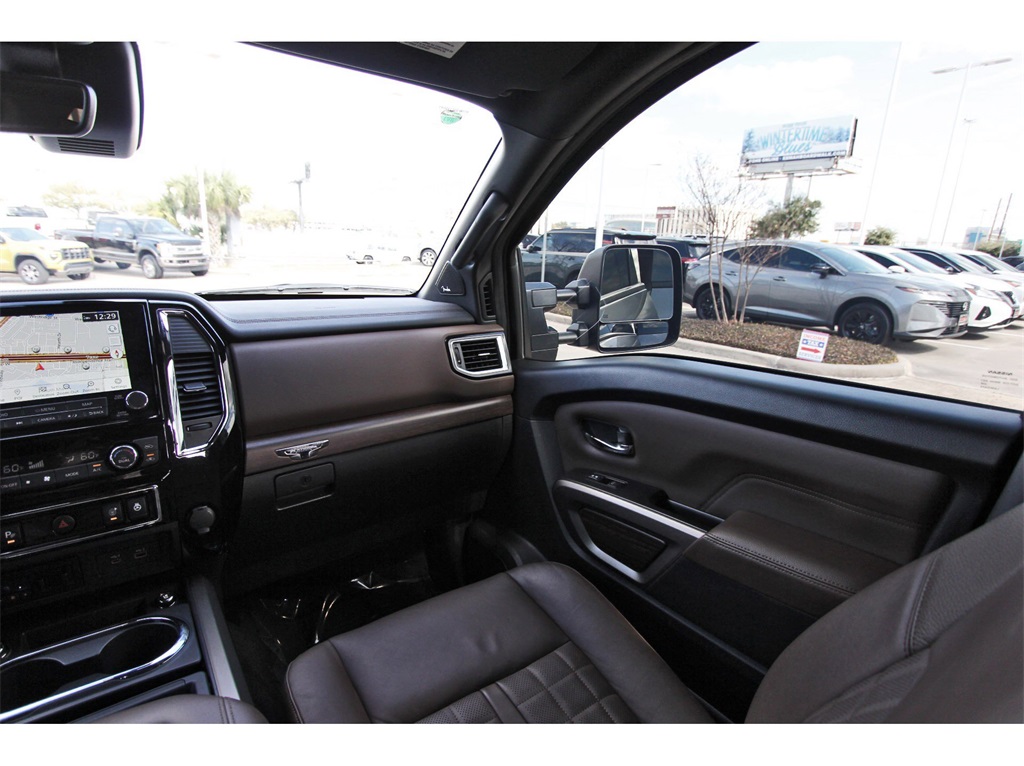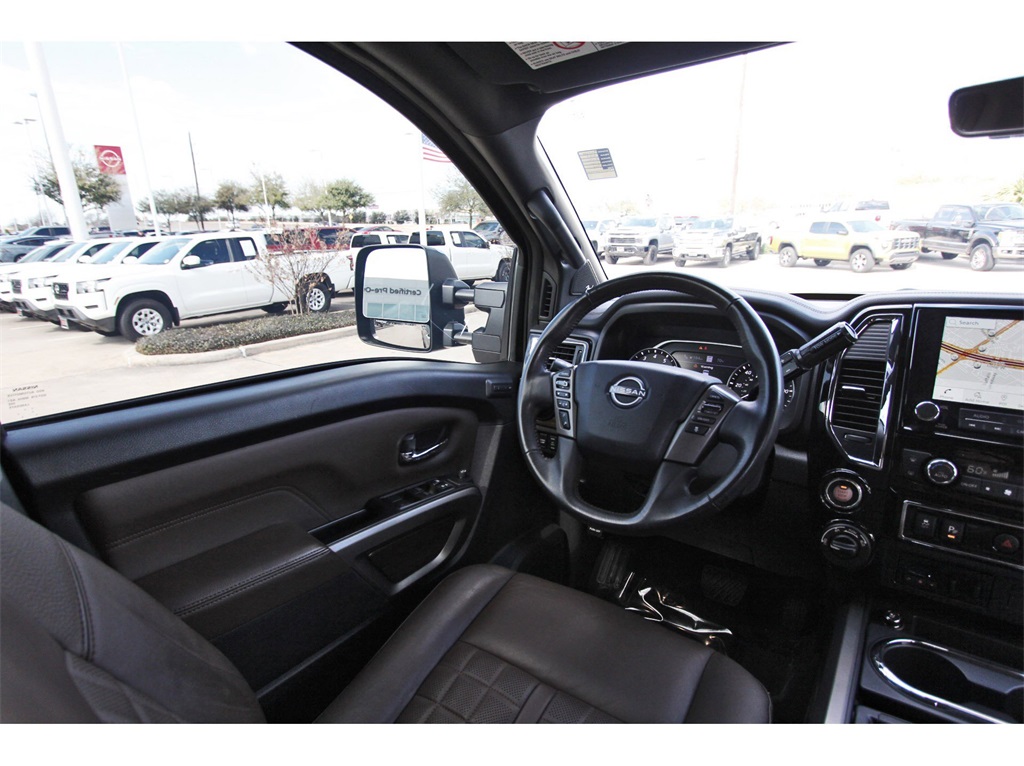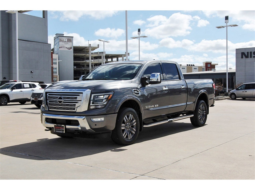 Central Houston Nissan is proud to present you with another True Market Priced Pre-Owned Vehicle. This 2023 Nissan Titan XD Platinum Reserve is loaded with the following Factory Options: Moonroof Package, Platinum Reserve Utility Package, Platinum Utility Package, 12 Speakers, 4-Wheel Disc Brakes, 4.083 Axle Ratio, ABS brakes, Air Conditioning, Alloy wheels, AM/FM radio: SiriusXM, Auto High-beam Headlights, Auto tilt-away steering wheel, Auto-dimming door mirrors, Auto-dimming Rear-View mirror, Automatic temperature control, Blind Spot Warning, Brake assist, Compass, Delay-off headlights, Driver door bin, Driver vanity mirror, Dual front impact airbags, Dual front side impact airbags, Electronic Stability Control, Emergency communication system: NissanConnect Services, Front anti-roll bar, Front Bucket Seats, Front Center Armrest, Front dual zone A/C, Front fog lights, Front reading lights, Front wheel independent suspension, Fully automatic headlights, Garage door transmitter: HomeLink, Genuine wood dashboard insert, Genuine wood door panel insert, Heated & Cooled Captain's Seats, Heated door mirrors, Heated front seats, Heated rear seats, Heated steering wheel, Illuminated entry, Illuminated Kick Plate - Platinum, Knee airbag, Leather Shift Knob, Leather steering wheel, Low tire pressure warning, Memory seat, Navigation system: NissanConnect Navigation, NissanConnect Services Powered By SiriusXM, Occupant sensing airbag, Outside temperature display, Overhead airbag, Overhead console, Panic alarm, Passenger door bin, Passenger vanity mirror, Platinum Reserve Mud Flaps, Power door mirrors, Power driver seat, Power passenger seat, Power steering, Power windows, Premium Leather Seat Trim, Radio data system, Radio: NissanConnect w/Navigation, Rain sensing wipers, Rear anti-roll bar, Rear seat center armrest, Rear step bumper, Rear window defroster, Remote keyless entry, Security system, Speed control, Speed-sensing steering, Speed-Sensitive Wipers, Split folding rear seat, Steering wheel memory, Steering wheel mounted audio controls, Tachometer, Telescoping steering wheel, Tilt steering wheel, Traction control, Turn signal indicator mirrors, USB Charging Cables, Variably intermittent wipers, Ventilated front seats, Voltmeter, and Wheels: 20" x 7.5" Dark Painted & Machined Clad!!Central Houston Nissan is more than just your typical car dealership. When our customers visit us, our goal is to provide quality vehicles, exceptional service and a friendly atmosphere. Our staff has been trained to create ease during your purchase or service experience and we are always making sure you get everything you want and deserve out of your visit. Our vision and mission is an employee-centered and customer-focused environment. Vehicles may be subject to prep package and market adjustment. When you buy from Central Houston Nissan, we'll make it the best car buying experience you've ever had. When you purchase a New Nissan or a qualifying Pre-Owned vehicle from Central Houston Nissan, you are automatically enrolled into our Central Houston Nissan Central Care Program at no cost to you. You can’t beat that! Vehicles may be subject to prep package and market adjustment. Stop by 2901 S Loop W, Houston, Texas 77054 today!!!