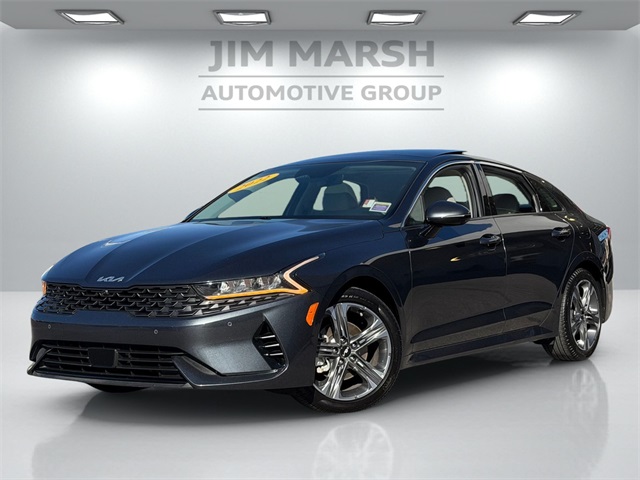 CARFAX One-Owner.Priced below KBB Fair Purchase Price!Odometer is 9378 miles below market average!27/37 City/Highway MPGGravity Gray 2022 Kia K5 EX FWD 8-Speed Automatic I4If you don't drive here, you can't save here!Price may not include recon fee. EX Premium Package (10-Way Power Passenger Seat, Active Sound Design, Auto Up/Down Rear Windows, Bose Premium Audio, Forward Collision Avoidance-Assist - Cyclist, Forward Collision Avoidance-Assist - Junction Turn, Heated Steering Wheel, LED Rear Combi Lamps, Memory Driver's Seat & Outside Mirrors, Navigation-Based Smart Cruise Control - Curve, Outside Mirrors w/LED Turn Signals, Parking Collision Avoidance-Assist - Reverse, Parking Distance Warning - Forward, Power Child Lock, Power Folding Outside Mirrors, Safe Exit Assist w/Lock, Smart Cruise Control w/Stop & Go, and Surround View Monitor), 4-Wheel Disc Brakes, 6 Speakers, ABS brakes, Air Conditioning, Alloy wheels, AM/FM radio: SiriusXM, Apple CarPlay & Android Auto, Auto High-beam Headlights, Automatic temperature control, Brake assist, Bumpers: body-color, Carpeted Floor Mats, Delay-off headlights, Driver door bin, Driver vanity mirror, Dual front impact airbags, Dual front side impact airbags, Electronic Stability Control, Emergency communication system, Four wheel independent suspension, Front anti-roll bar, Front Bucket Seats, Front Center Armrest, Front dual zone A/C, Front reading lights, Fully automatic headlights, Heated & Ventilated Front Bucket Seats, Heated door mirrors, Heated front seats, Illuminated entry, Knee airbag, Leatherette Seat Trim, Low tire pressure warning, Navigation System, Occupant sensing airbag, Outside temperature display, Overhead airbag, Overhead console, Panic alarm, Passenger door bin, Passenger vanity mirror, Power door mirrors, Power driver seat, Power moonroof, Power steering, Power windows, Radio data system, Radio: AM/FM/MP3 Audio System, Rear anti-roll bar, Rear reading lights, Rear seat center armrest, Rear side impact airbag, Rear window defroster, Remote keyless entry, Security system, Smart Key w/ Push Button and Remote Start, Speed control, Speed-sensing steering, Split folding rear seat, Steering wheel mounted audio controls, Tachometer, Telescoping steering wheel, Tilt steering wheel, Traction control, Trip computer, Variably intermittent wipers, Ventilated front seats, and Wheels: 7.5J x 18" Gray Machined Finish Alloy.