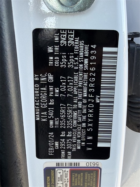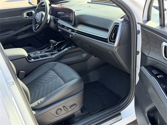 CARFAX One-Owner.Priced below KBB Fair Purchase Price!20/27 City/Highway MPGGlacial White Pearl 2024 Kia Sorento X-Pro SX Prestige AWD 8-Speed DCT 2.5L I4 DGI Turbocharged DOHC 16V LEV3-SULEV30 281hp AWD.If you don't drive here, you can't save here!Price may not include recon fee. AWD, 12 Speakers, 3.316 Axle Ratio, 3rd row seats: split-bench, 4-Wheel Disc Brakes, ABS brakes, Air Conditioning, Alloy wheels, AM/FM radio: SiriusXM, Apple CarPlay & Android Auto, Auto High-beam Headlights, Auto-dimming Rear-View mirror, Automatic temperature control, Brake assist, Bumpers: body-color, Carpeted Floor Mats, Delay-off headlights, Driver door bin, Driver vanity mirror, Dual front impact airbags, Dual front side impact airbags, Electronic Stability Control, Emergency communication system: 911 Connect, Exterior Parking Camera Rear, Four wheel independent suspension, Front anti-roll bar, Front Bucket Seats, Front Center Armrest, Front dual zone A/C, Front fog lights, Front reading lights, Fully automatic headlights, Garage door transmitter: HomeLink, Heated & Ventilated Front Bucket Seats, Heated door mirrors, Heated front seats, Heated rear seats, Heated steering wheel, Illuminated entry, Knee airbag, Leather steering wheel, Low tire pressure warning, Memory seat, Navigation System, Occupant sensing airbag, Outside temperature display, Overhead airbag, Overhead console, Panic alarm, Passenger door bin, Passenger vanity mirror, Perforated Genuine Leather Seat Trim, Power door mirrors, Power driver seat, Power Liftgate, Power moonroof, Power passenger seat, Power steering, Power windows, Radio data system, Radio: AM/FM Bose Premium Audio System, Rain sensing wipers, Rear anti-roll bar, Rear reading lights, Rear side impact airbag, Rear window defroster, Rear window wiper, Remote keyless entry, Security system, Smart Key w/ Push Button and Remote Start, Speed control, Speed-sensing steering, Split folding rear seat, Spoiler, Steering wheel mounted audio controls, Tachometer, Telescoping steering wheel, Tilt steering wheel, Traction control, Trip computer, Turn signal indicator mirrors, Variably intermittent wipers, Ventilated front seats, and Wheels: 7.0J x 17" Gloss Black X-Pro Alloy.