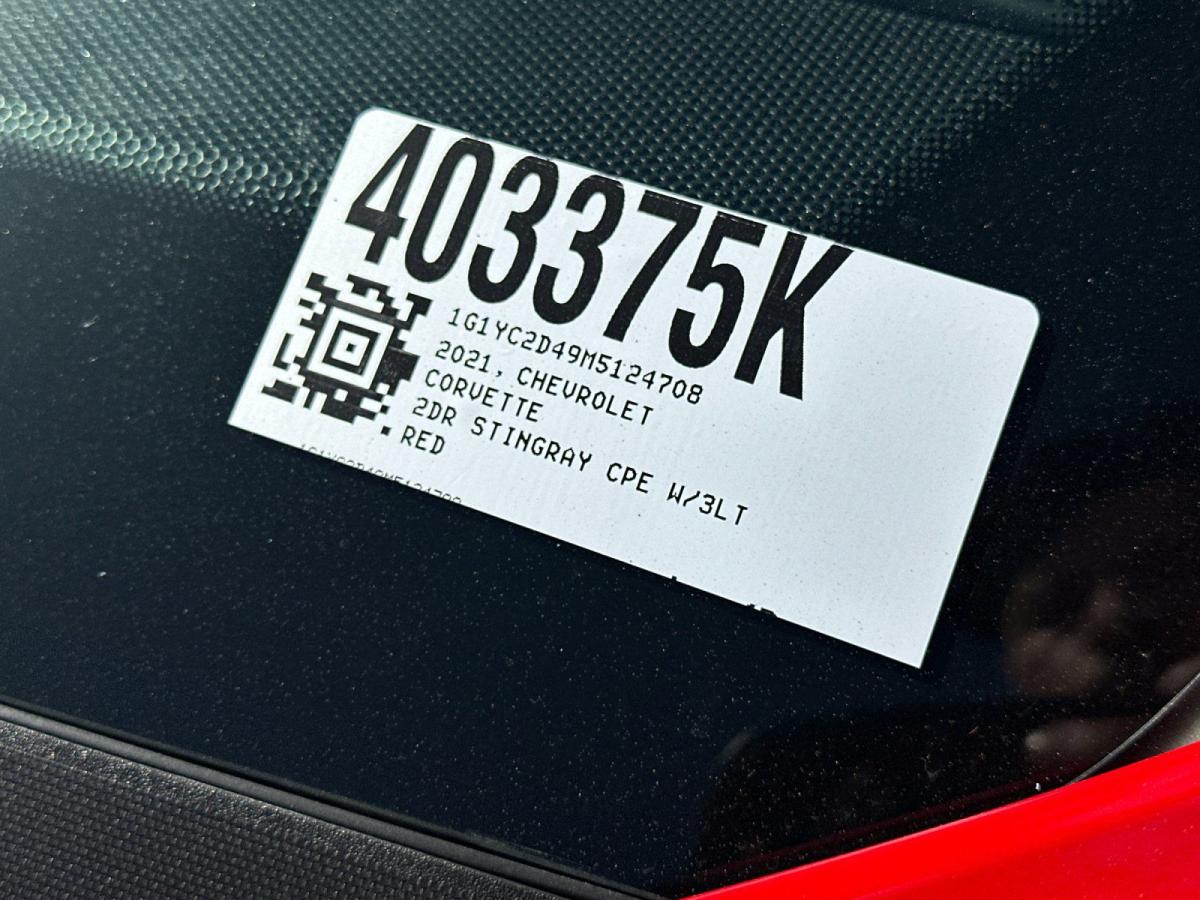 Discover the unparalleled thrill of the 2021 Chevrolet Corvette Stingray 3LT. This stunning sports car is a true masterpiece of engineering and design, ready to elevate your driving experience to new heights.Meticulously crafted with a host of premium features, this Corvette Stingray 3LT is equipped to deliver uncompromising performance and unmatched style. Highlights include:• Z51 Performance Package• Front Lift Adjustable Height with Memory• Suspension with Magnetic Selective Ride Control• Sueded Microfiber-Wrapped Steering Wheel• Edge Red LT2 Engine CoverUnder the hood, you'll find a powerful 6.2L V8 engine mated to an 8-speed Dual Clutch transmission, delivering an exhilarating 15 city / 27 highway MPG. With the Z51 Performance Package, this Corvette is primed for heart-pounding acceleration and precise handling, thanks to features like performance brakes, suspension, and an electronic limited-slip differential.The stunning Red exterior is complemented by a luxurious two-tone leather interior, offering exceptional comfort and style. Indulge in the latest technology, including the Chevrolet Infotainment 3 Premium System with wireless Apple CarPlay and Android Auto, a Bose Performance Series sound system, and a Head-Up Display to keep your focus on the road ahead.Safety and convenience are also prioritized, with features like Rear Cross Traffic Alert, Front and Rear Vision Cameras, and a Performance Data and Video Recorder to capture your driving adventures.Whether you're seeking heart-pounding performance, head-turning design, or uncompromising luxury, this 2021 Chevrolet Corvette Stingray 3LT is the ultimate expression of automotive excellence. Experience the thrill for yourself and schedule a test drive today. We're confident you'll be captivated by its unparalleled capabilities and refined sophistication.