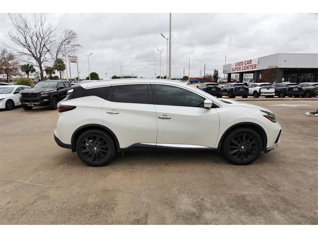 South Houston Nissan is proud to present you with another True Market Priced Pre-Owned Vehicle. This 2022 Nissan Murano Platinum is loaded with the following Factory Options: CVT with Xtronic Cargo Package (Cargo Area Protector, Cargo Net, First Aid Kit, and Retractable Cargo Cover), CVT with Xtronic, 11 Speakers, 4-Wheel Disc Brakes, 4.667 Axle Ratio, ABS brakes, Air Conditioning, Alloy wheels, AM/FM radio: SiriusXM, AM/FM/CD/MP3/WMA Audio System, Auto High-beam Headlights, Auto tilt-away steering wheel, Auto-dimming Rear-View mirror, Automatic temperature control, Blind Spot Warning, Brake assist, Bumpers: body-color, Carpeted Floor Mats & Carpeted Cargo Mat, CD player, Child-Seat-Sensing Airbag, Delay-off headlights, Driver door bin, Driver vanity mirror, Dual front impact airbags, Dual front side impact airbags, Electronic Stability Control, Emergency communication system: NissanConnect Services (first 6 months included), Exterior Parking Camera Rear, Four wheel independent suspension, Front anti-roll bar, Front Bucket Seats, Front Center Armrest, Front dual zone A/C, Front fog lights, Front reading lights, Fully automatic headlights, Garage door transmitter: HomeLink, Heated & Ventilated Front Bucket Seats, Heated door mirrors, Heated front seats, Heated rear seats, Heated steering wheel, Illuminated entry, Illuminated Kick Plates, Illuminated Kick Plates (PIO), Knee airbag, Low tire pressure warning, Memory seat, Navigation system: NissanConnect Navigation, NissanConnect featuring Apple CarPlay and Android Auto, NissanConnect Services Powered By SiriusXM, Occupant sensing airbag, Outside temperature display, Overhead airbag, Overhead console, Panic alarm, Passenger door bin, Passenger vanity mirror, Power door mirrors, Power driver seat, Power Liftgate, Power moonroof, Power passenger seat, Power steering, Power windows, Premium audio system: Bose, Radio data system, Rear anti-roll bar, Rear Bumper Protector, Rear reading lights, Rear seat center armrest, Rear side impact airbag, Rear window defroster, Rear window wiper, Remote keyless entry, Roof rack: rails only, Security system, Semi-Aniline Leather-Appointed Seat Trim, Speed control, Speed-sensing steering, Speed-Sensitive Wipers, Splash Guards (B92), Split folding rear seat, Spoiler, Steering wheel memory, Steering wheel mounted audio controls, Tachometer, Telescoping steering wheel, Tilt steering wheel, Traction control, Trip computer, Turn signal indicator mirrors, Variably intermittent wipers, Ventilated front seats, Wheels: 20" Satin Black Alloy, and Wheels: 20" Unique Dark Hyper Silver!!Excludes sales taxes (vary by state) tag-title-license and dealer added options. Must finance with South Houston Nissan to qualify for online pricing.