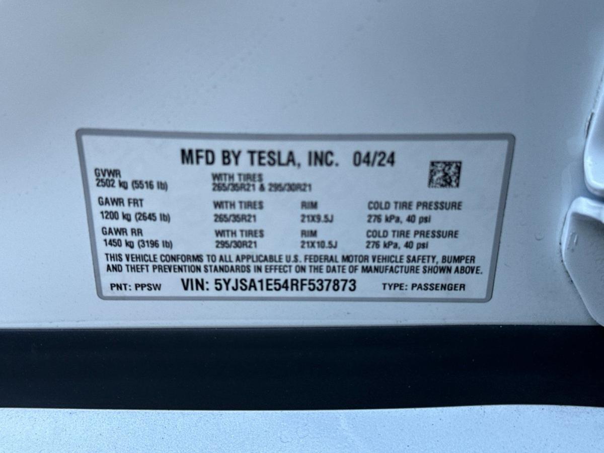 Discover the exceptional 2024 Tesla Model S Base, a true testament to the pinnacle of electric vehicle engineering. With its sleek and sophisticated design, advanced electric powertrain, and an array of premium features, this model is poised to redefine your driving experience.Boasting a host of impressive capabilities, this Tesla Model S Base is equipped with:• Collision Warning System• Parking Sensors• Premium Sound System• Push-Button Ignition• Navigation System• 22 Speakers• Air Conditioning with Dual-Zone Automatic Control• Heated and Ventilated Front Seats• Leather-Wrapped Steering Wheel• Power Liftgate• Lane Departure Warning System• Rear-View CameraStep into the future of automotive excellence with this exceptional Tesla Model S Base. Its seamless blend of cutting-edge technology, uncompromising performance, and unparalleled comfort will captivate you from the moment you slide behind the wheel.Powered by an advanced electric motor and boasting an impressive EPA-estimated range of 127 MPGe in the city and 116 MPGe on the highway, this Tesla Model S Base delivers the perfect balance of efficiency and exhilaration. With its instant torque and responsive handling, you'll experience the thrill of electric driving like never before.The interior of this Tesla Model S Base is a true sanctuary of luxury and refinement. Wrapped in premium materials and featuring a spacious and well-appointed cabin, this vehicle is designed to pamper you and your passengers. The heated and ventilated front seats, along with the heated rear seats, ensure exceptional comfort no matter the weather, while the advanced infotainment system and premium sound system provide an immersive entertainment experience.Safety is of the utmost importance, and the Tesla Model S Base is equipped with a comprehensive suite of advanced driver-assistance technologies. From the Collision Warning System to the Lane Departure Warning System, this vehicle is engineered to keep you and your loved ones protected on the road.With its exceptional performance, uncompromising quality, and remarkable features, the 2024 Tesla Model S Base is the ultimate expression of electric vehicle excellence. Experience the future of driving today and schedule a test drive at our showroom. We're confident that this exceptional Tesla will exceed your expectations and leave a lasting impression.