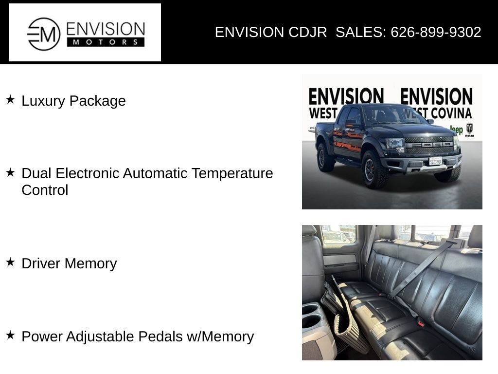 WE SPECIALIZE IN ALL CREDIT PROFILES! See what we can do for you! Call to find out (626) 899-9302.4WD, Driver Memory, Dual Electronic Automatic Temperature Control, Luxury Package, Power Adjustable Pedals w/Memory.Tuxedo Black2010 Ford F-150 SVT Raptor 4WD 6-Speed Automatic 5.4L V8 EFI 24V**********All Pricing and Advertised Prices for any/all vehicles offered for sale does not include dealer installed accessories which can be purchased for an additional cost.********** The Factory Rebates may not be available on this vehicle if you elect to take advantage of a Special Alternative APR or Special Lease program. Some Factory Rebates are California Resident specific and may vary for residents of other states. NO sales to Dealers, Brokers or Exporters. For out of state purchase, customers must be present to purchase. If shipping is required, dealership must facilitate; no exceptions. Please contact us for special Multi-Vehicle or Fleet pricing. Prices are plus government fees and taxes, any finance charges, $85 documentary fee, $29 electronic registration fee, any emission testing charge and $1.75 per new tire state tire fee. *** We make every effort to provide accurate information, but please verify before purchasing. Leasing & financing available on approved credit. Trade-ins accepted. Subject to prior sale.Awards: * 2010 KBB.com Brand Image AwardsReviews: * If you want a truck with serious towing and payload capabilities, yet as quiet and comfortable as many luxury sedans, then the F-150 should surely be on your shopping list. Source: KBB.com