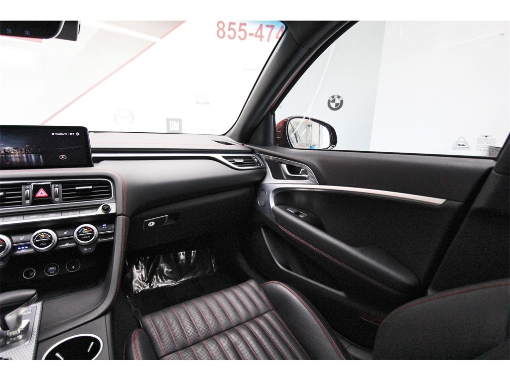 Central Houston Nissan is proud to present you with another True Market Priced Pre-Owned Vehicle. This 2023 Genesis G70 2.0T is loaded with the following Factory Options: Sport Prestige Package (4-Way Power Lumbar Front Passenger Seat, Acoustic Front Door Glass, Alloy Pedals, Dark Chrome Grille & Daylight Opening Trim, Forward & Reverse Parking Distance Warning, Front Passenger Seat Walk-In Device, Integrated Memory System (IMS), Leather Seating Surfaces, Option Group 02, Power Folding ECM Outside Mirrors, Power Telescoping Steering Wheel, Radio: AM/FM/SiriusXM/HD Lexicon Prem Audio System, Rain-Sensing Wipers, Sport Aluminum Trim, Ventilated Front Seats, Wheels: 19" x 8.0J Fr & 19" x 8.5J Rr Sport Alloy, Wide Sunroof, and Wireless Device Charging), 4-Wheel Disc Brakes, 6 Speakers, ABS brakes, Air Conditioning, Alloy wheels, AM/FM radio: SiriusXM, Android Auto & Apple CarPlay, Anti-whiplash front head restraints, Auto High-beam Headlights, Auto-dimming Rear-View mirror, Automatic temperature control, Brake assist, Bumper Applique, Bumpers: body-color, Delay-off headlights, Driver door bin, Driver vanity mirror, Dual front impact airbags, Dual front side impact airbags, Electronic Stability Control, Emergency communication system: Genesis Connected Services, Exterior Parking Camera Rear, Four wheel independent suspension, Front anti-roll bar, Front Bucket Seats, Front Center Armrest, Front dual zone A/C, Front reading lights, Fully automatic headlights, Garage door transmitter: HomeLink, Heated door mirrors, Heated front seats, Heated Multi-Adjustable Front Bucket Seats, Illuminated Door Scuff Plates, Illuminated entry, Knee airbag, Leatherette Seating Surfaces, Low tire pressure warning, Navigation System, Occupant sensing airbag, Outside temperature display, Overhead airbag, Overhead console, Panic alarm, Passenger door bin, Passenger vanity mirror, Power door mirrors, Power driver seat, Power passenger seat, Power steering, Power windows, Radio: AM/FM/SiriusXM/HD Audio System, Rear anti-roll bar, Rear reading lights, Rear seat center armrest, Rear window defroster, Remote keyless entry, Security system, Speed control, Speed-Sensitive Wipers, Split folding rear seat, Steering wheel mounted audio controls, Tachometer, Telescoping steering wheel, Traction control, Trip computer, Turn signal indicator mirrors, Variably intermittent wipers, Wheel Locks, and Wheels: 19" x 8.0J Fr & 19" x 8.5J Rr Alloy!!Central Houston Nissan is more than just your typical car dealership. When our customers visit us, our goal is to provide quality vehicles, exceptional service and a friendly atmosphere. Our staff has been trained to create ease during your purchase or service experience and we are always making sure you get everything you want and deserve out of your visit. Our vision and mission is an employee-centered and customer-focused environment. Vehicles may be subject to prep package and market adjustment. When you buy from Central Houston Nissan, we'll make it the best car buying experience you've ever had. When you purchase a New Nissan or a qualifying Pre-Owned vehicle from Central Houston Nissan, you are automatically enrolled into our Central Houston Nissan Central Care Program at no cost to you. You can’t beat that! Vehicles may be subject to prep package and market adjustment. Stop by 2901 S Loop W, Houston, Texas 77054 today!!!