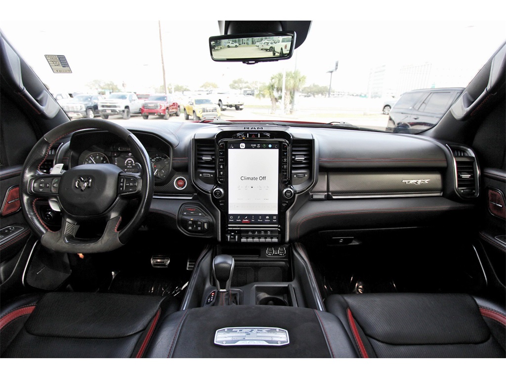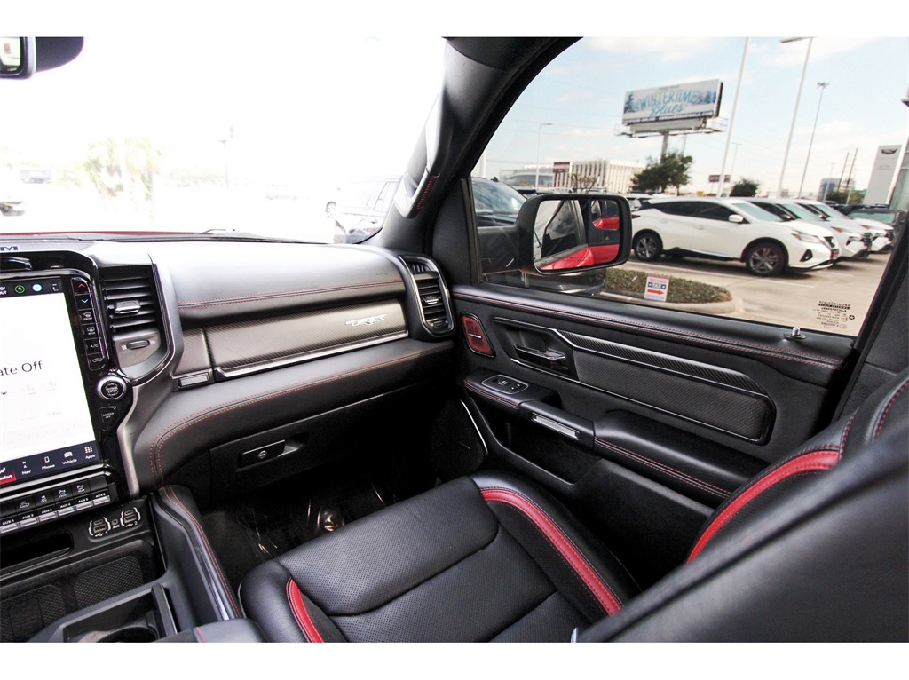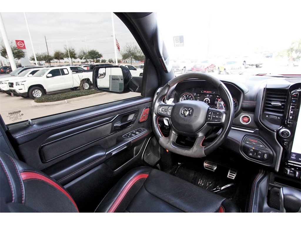 Central Houston Nissan is proud to present you with another True Market Priced Pre-Owned Vehicle. This 2022 Ram 1500 TRX is loaded with the following Factory Options: Advanced Safety Group (Adaptive Cruise Control w/Stop & Go, Lane Keep Assist, Pedestrian Emergency Braking, and Tailgate Ajar Warning Lamp), Quick Order Package 29Y, TRX Carbon Fiber Package (Leather/Carbon Flat-Bottom Steering Wheel and Real Carbon Fiber Interior Accents), TRX Level 2 Equipment Group (#2 Seat Foam Cushion, 2-Door Passive Entry, Front Door Locks, 4 Way Front Headrests, Blind Spot & Cross Path Detection, Body Color Door Handles, Bucket Seats, Center Console Parts Module, Digital Rearview Mirror, Driver Seat Memory, Driver/Passenger Wrapped Assist Handles, Exterior Mirrors w/Memory, Front Door Accent Lighting, Front Seat Back Map Pockets, Full Length Premium Upgraded Floor Console, harman/kardon 19 Speaker Premium Sound, Heads-Up Display, Heated Front Seats, Heated Second Row Seats, Heated Steering Wheel, IP LED Ambient Light Pipe, Leather Trimmed Bucket Seats, Leather/Suede Flat-Bottom Steering Wheel, LED CHMSL Lamp, Luxury Front Door Trim Panel, MOPAR Bright Pedal Kit, ParkSense Front/Rear Park Assist w/Stop, Pick-Up Box Lighting, Power 4-Way Driver Lumbar Adjust, Power 4-Way Passenger Lumbar Adjust, Power 8-Way Driver & Passenger Seats, Power Adjustable Pedals w/Memory, Premium Wrapped IP Bezel, Radio/Driver Seat/Mirrors/Pedals Memory, Rain Sensitive Windshield Wipers, Rear 60/40 Folding Seat, Rear 60/40 Folding Split Recline Seat, Rear Door Accent Lighting, Rear Underseat Compartment Storage, Rear Window Defroster, Remote Tailgate Release, Sun Visors w/Illuminated Vanity Mirrors, Surround View Camera System, Trailer Brake Control, Universal Garage Door Opener, Ventilated Front Seats, Ventilated Rear Seats, and Wireless Charging Pad), 10 Speakers, 3.55 Rear Axle Ratio, 4-Wheel Disc Brakes, ABS brakes, Adaptive suspension, Air Conditioning, Alloy wheels, AM/FM radio: SiriusXM with 360L, Apple CarPlay/Android Auto, Auto High-beam Headlights, Auto-dimming door mirrors, Auto-dimming Rear-View mirror, Automatic temperature control, Black Exterior Mirrors, Brake assist, Cloth/Vinyl Bucket Seats, Compass, Delay-off headlights, Dome Dual LED Reading Lamp, Driver door bin, Dual front impact airbags, Dual front side impact airbags, Dual-Pane Panoramic Sunroof, Electronic Stability Control, Exterior Mirrors Courtesy Lamps, Exterior Mirrors w/Heating Element, Exterior Mirrors w/Supplemental Signals, Front anti-roll bar, Front Bucket Seats, Front Center Armrest w/Storage, Front dual zone A/C, Front fog lights, Front reading lights, Front wheel independent suspension, Fully automatic headlights, Heated door mirrors, Illuminated entry, Leather Shift Knob, Leather steering wheel, Low tire pressure warning, MOPAR Rambar, MOPAR TRX Exterior Graphics, MOPAR TRX Hood Graphics, Navigation System, Occupant sensing airbag, Outside temperature display, Overhead airbag, Overhead console, Panic alarm, ParkView Rear Back-Up Camera, Passenger door bin, Passenger vanity mirror, Power door mirrors, Power driver seat, Power steering, Power windows, Power-Folding Mirrors, Radio data system, Radio: Uconnect 5 Nav w/12.0" Display, Rear seat center armrest, Rear step bumper, Remote keyless entry, Security system, Speed control, Split folding rear seat, Sport steering wheel, Steering wheel mounted audio controls, Tachometer, Telescoping steering wheel, Tilt steering wheel, Traction control, Trip computer, TRX Red Interior Accents, Turn signal indicator mirrors, Variably intermittent wipers, Voltmeter, and Wheels: 18" x 9" Black Paint/Polish Aluminum!!Central Houston Nissan is more than just your typical car dealership. When our customers visit us, our goal is to provide quality vehicles, exceptional service and a friendly atmosphere. Our staff has been trained to create ease during your purchase or service experience and we are always making sure you get everything you want and