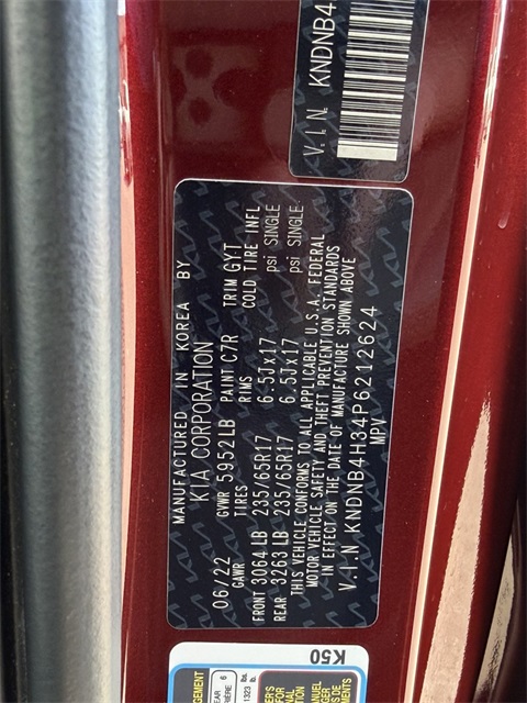 CARFAX One-Owner.Odometer is 9212 miles below market average!19/26 City/Highway MPGFlare Red 2023 Kia Carnival LX FWD 8-Speed Automatic V6If you don't drive here, you can't save here!Price may not include recon fee. 3.51 Axle Ratio, 3rd row seats: split-bench, 4-Wheel Disc Brakes, 6 Speakers, ABS brakes, Air Conditioning, Alloy wheels, AM/FM radio, Apple CarPlay & Android Auto, Auto High-beam Headlights, Brake assist, Bumpers: body-color, Cargo Mat, Cargo Net, Cargo Tray, Cloth Seat Trim, Delay-off headlights, Driver door bin, Driver vanity mirror, Dual front impact airbags, Dual front side impact airbags, Electronic Stability Control, Four wheel independent suspension, Front anti-roll bar, Front Bucket Seats, Front Center Armrest, Front reading lights, Fully automatic headlights, Heated door mirrors, Illuminated entry, Knee airbag, Leather Shift Knob, Low tire pressure warning, Occupant sensing airbag, Outside temperature display, Overhead airbag, Overhead console, Panic alarm, Passenger door bin, Passenger vanity mirror, Power door mirrors, Power steering, Power windows, Radio: AM/FM Audio System, Rear air conditioning, Rear anti-roll bar, Rear reading lights, Rear window defroster, Rear window wiper, Reclining 3rd row seat, Remote keyless entry, Security system, Speed control, Speed-sensing steering, Split folding rear seat, Spoiler, Steering wheel mounted audio controls, Tachometer, Telescoping steering wheel, Tilt steering wheel, Traction control, Trip computer, Turn signal indicator mirrors, Variably intermittent wipers, Wheel Locks, and Wheels: 6.5J x 17" Silver Painted Alloy.