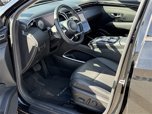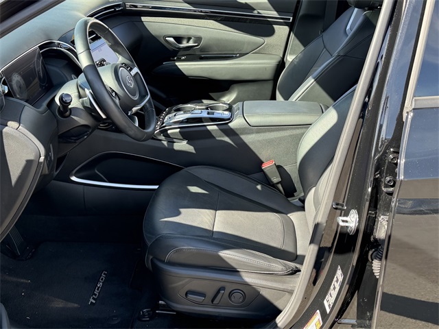 CARFAX One-Owner.Odometer is 11088 miles below market average!25/32 City/Highway MPGPhantom Black 2023 Hyundai Tucson Limited FWD 8-Speed Automatic with SHIFTRONIC 2.5L I4 DGI DOHC 16V LEV3-ULEV70 187hpIf you don't drive here, you can't save here!Price may not include recon fee. Option Group 01, 3.648 Axle Ratio, 4-Wheel Disc Brakes, 8 Speakers, ABS brakes, Air Conditioning, Alloy wheels, AM/FM radio: SiriusXM, Apple CarPlay & Android Auto, Auto High-beam Headlights, Auto-dimming Rear-View mirror, Automatic temperature control, Brake assist, Bumpers: body-color, Cargo Cover, Cargo Tray, Carpeted Floor Mats, Delay-off headlights, Driver door bin, Driver vanity mirror, Dual front impact airbags, Dual front side impact airbags, Electronic Stability Control, Emergency communication system: Blue Link Connected Car Service (3-year complimentary subscription), Four wheel independent suspension, Front and Rear Mudguards, Front anti-roll bar, Front Bucket Seats, Front Center Armrest, Front dual zone A/C, Front reading lights, Fully automatic headlights, Garage door transmitter: HomeLink, Heated & Ventilated Front Bucket Seats, Heated door mirrors, Heated front seats, Heated rear seats, Heated steering wheel, Illuminated entry, Leather Seat Trim, Low tire pressure warning, Memory seat, Navigation System, Occupant sensing airbag, Outside temperature display, Overhead airbag, Overhead console, Panic alarm, Passenger door bin, Passenger vanity mirror, Power door mirrors, Power driver seat, Power Liftgate, Power moonroof, Power passenger seat, Power steering, Power windows, Radio data system, Radio: Bose Premium w/AM/FM/HD/SiriusXM Audio System, Rain sensing wipers, Rear anti-roll bar, Rear Bumper Applique, Rear reading lights, Rear seat center armrest, Rear window defroster, Rear window wiper, Remote keyless entry, Roof rack: rails only, Security system, Speed control, Split folding rear seat, Spoiler, Steering wheel mounted audio controls, Tachometer, Telescoping steering wheel, Tilt steering wheel, Traction control, Trip computer, Turn signal indicator mirrors, Variably intermittent wipers, Ventilated front seats, and Wheels: 19" x 7.5J" Machine-Face Finish Alloy.