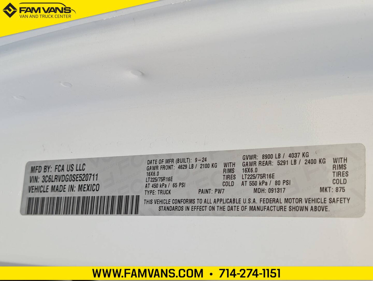 Here at FAM Vans we have over 350 vans and trucks in stock at any given time, plus we get fresh inventory every month. We can modify any vehicle to fit your needs or find the right one that fits your budget! Full Parts and Service departments. -159-in WB -GVWR: 8,900 LBS -Dimensions: 236.2 L x 80.3 W x 102.1 H