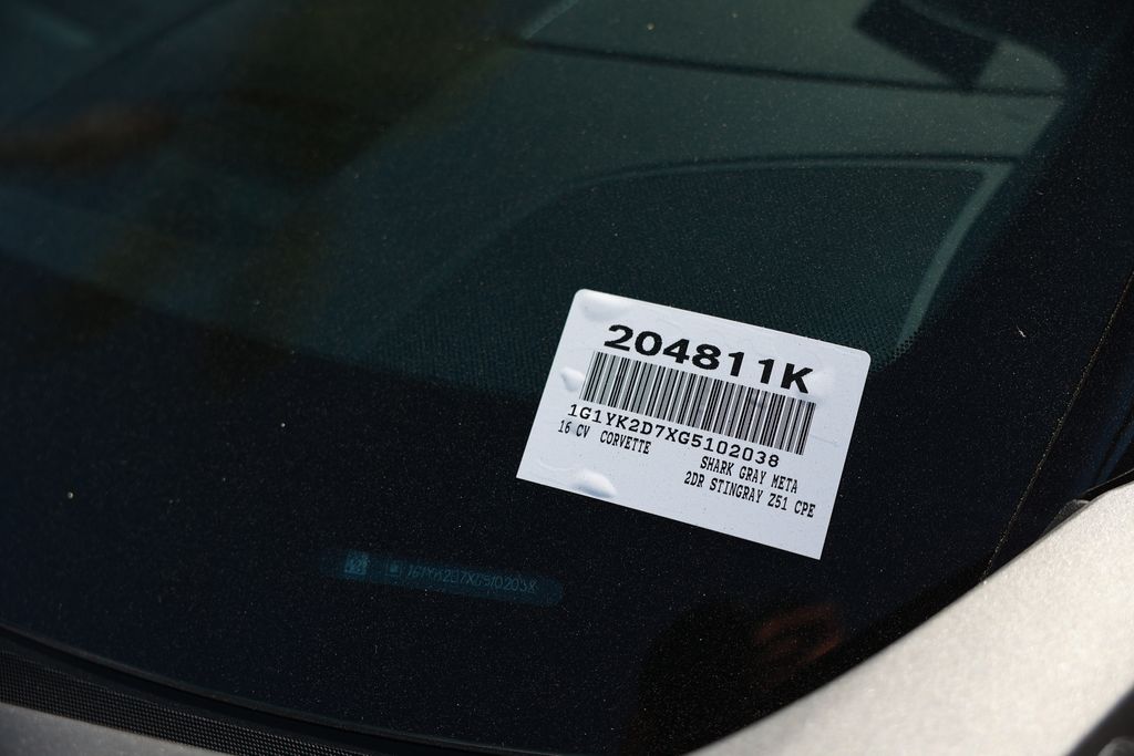 Introducing the 2016 Chevrolet Corvette Stingray Z51 2LT, a true masterpiece of automotive engineering. This captivating sports car is more than just a head-turner; it's a symphony of power, precision, and pure driving exhilaration.Meticulously equipped, this Corvette boasts an impressive array of features that cater to the discerning enthusiast:- Carbon Flash Badge Package- Magnetic Selective Ride Control- Red-Painted Calipers- Black Aluminum Wheels- Rear Spoiler and Carbon Flash-Painted Mirrors- Performance Data and Video RecorderThe 6.2L V8 engine, paired with an 8-speed paddle-shift transmission, delivers a thrilling 460 horsepower and an impressive 29 MPG on the highway. With its rear-wheel-drive configuration and advanced performance technologies, this Corvette Stingray Z51 2LT promises an unparalleled driving experience that will leave you craving the open road.Stepping inside, you'll be greeted by a meticulously crafted interior that seamlessly blends style and functionality. The 2LT Preferred Equipment Group offers a host of premium amenities, including a Bose premium audio system, heated and ventilated seats, and a head-up display that keeps vital information within your line of sight.But the true allure of this Corvette lies in its timeless design and uncompromising performance. The sleek, aerodynamic silhouette and sculpted curves turn heads wherever you go, while the advanced suspension and braking systems ensure precise control and confidence-inspiring handling.Whether you're seeking the ultimate daily driver or a thrilling weekend warrior, this 2016 Chevrolet Corvette Stingray Z51 2LT is the embodiment of automotive excellence. Experience the power, the passion, and the pure exhilaration that only a Corvette can deliver. Visit our showroom today and let us demonstrate why this exceptional sports car should be your next automotive adventure.