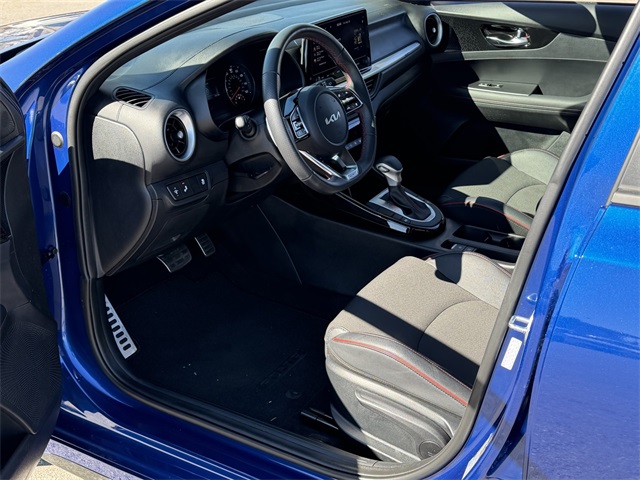 Odometer is 7970 miles below market average!Deep Sea Blue 2024 Kia Forte GT FWD 1.6L I4 TurboIf you don't drive here, you can't save here!Price may not include recon fee. 18" x 7.5J Alloy Wheels, 4-Wheel Disc Brakes, ABS brakes, Air Conditioning, Alloy wheels, AM/FM radio: SiriusXM, Apple CarPlay & Android Auto, Auto High-beam Headlights, Automatic temperature control, Brake assist, Bumpers: body-color, Delay-off headlights, Driver door bin, Driver vanity mirror, Dual front impact airbags, Dual front side impact airbags, Electronic Stability Control, Emergency communication system, Exterior Parking Camera Rear, Four wheel independent suspension, Front anti-roll bar, Front Bucket Seats, Front Center Armrest, Front dual zone A/C, Front fog lights, Front reading lights, Fully automatic headlights, Heated door mirrors, Illuminated entry, Leather Shift Knob, Leather steering wheel, Low tire pressure warning, Navigation System, Occupant sensing airbag, Outside temperature display, Overhead airbag, Overhead console, Panic alarm, Passenger door bin, Passenger vanity mirror, Power door mirrors, Power steering, Power windows, Radio data system, Rear anti-roll bar, Rear seat center armrest, Rear window defroster, Remote keyless entry, Security system, Speed control, Split folding rear seat, Spoiler, Sport steering wheel, Steering wheel mounted audio controls, SynTex Seat Trim, Tachometer, Telescoping steering wheel, Tilt steering wheel, Traction control, Trip computer, Turn signal indicator mirrors, and Variably intermittent wipers.