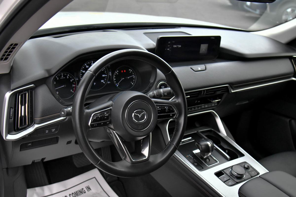 Delivers 28 Highway MPG and 24 City MPG! This Mazda CX-90 delivers a Intercooled Turbo Gas/Electric I-6 3.3 L/200 engine powering this Automatic transmission. RHODIUM WHITE PREMIUM PAINT CHARGE, RHODIUM WHITE PREMIUM, BLACK, LEATHER SEAT TRIM.*This Mazda CX-90 Comes Equipped with These Options *Wireless Phone Connectivity, Window Grid Antenna, Wheels: 19 x 8.5J Aluminum Alloy -inc: silver metallic finish, Trunk/Hatch Auto-Latch, Trip Computer, Transmission: SKYACTIV Drive 8-Speed Automatic -inc: manual shift mode, Transmission w/Driver Selectable Mode, Towing Equipment -inc: Trailer Sway Control, Tires: 265/55R19, Tire Specific Low Tire Pressure Warning.