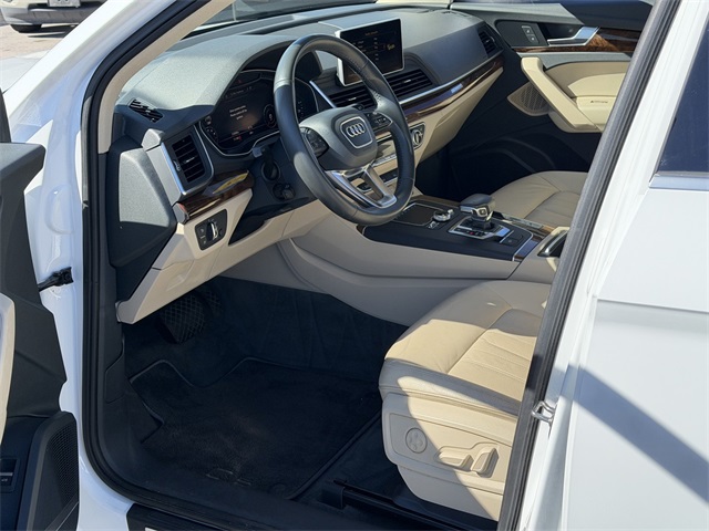 Recent Arrival!Priced below KBB Fair Purchase Price!Odometer is 30269 miles below market average!23/27 City/Highway MPGIbis White 2018 Audi Q5 2.0T Premium Plus quattro quattro 7-Speed Automatic S tronic 2.0L TFSI Beige Leather.If you don't drive here, you can't save here!Awards: * 2018 KBB.com Best Buy Awards * 2018 KBB.com Best Auto Tech Awards * 2018 KBB.com 10 Most Awarded Cars * 2018 KBB.com 10 Favorite New-for-2018 Cars * 2018 KBB.com 10 Most Awarded BrandsPrice may not include recon fee. Navigation Package (Audi Connect PRIME & PLUS, Audi Virtual Cockpit, and Radio: MMI Navigation Plus System), Premium Plus Package (3-Step Heated Front Seats, Audi Advanced Key, Audi Connect CARE, Audi Side Assist w/Pre Sense Rear, Driver Seat Memory, Full LED Headlights, Heated Auto-Dimming & Power-Adjustable Mirrors, High Gloss Window Surrounds, Panoramic Sunroof w/Tilt/Slide & Power Sunshade, Parking System Plus (Front/Rear Acoustic Sensors), Rear Cross Traffic Assist, SiriusXM All Access Service, Stainless Steel Door Sills, and Vehicle Exit Assist), Beige Leather, 10 Speakers, 4-Wheel Disc Brakes, 5.302 Axle Ratio, 8-Way Power Front Bucket Seats, ABS brakes, Air Conditioning, Alloy wheels, AM/FM radio, Audi smartphone interface (Apple CarPlay/Android Auto), Auto-dimming Rear-View mirror, Automatic temperature control, Bang & Olufsen 3D Sound System, Black Privacy Trunk Cover, Brake assist, Bumpers: body-color, Compass, Delay-off headlights, Driver door bin, Driver vanity mirror, Dual front impact airbags, Dual front side impact airbags, Electronic Stability Control, Exterior Parking Camera Rear, Four wheel independent suspension, Front anti-roll bar, Front Bucket Seats, Front Center Armrest, Front dual zone A/C, Front fog lights, Front reading lights, Garage door transmitter: HomeLink, Genuine wood console insert, Genuine wood dashboard insert, Genuine wood door panel insert, Heated door mirrors, High intensity discharge headlights: Xenon plus, Illuminated entry, Leather Seating Surfaces, Leather Shift Knob, Leather steering wheel, Low tire pressure warning, Occupant sensing airbag, Outside temperature display, Overhead airbag, Overhead console, Panic alarm, Passenger door bin, Passenger vanity mirror, Power door mirrors, Power driver seat, Power Liftgate, Power passenger seat, Power steering, Power windows, Radio data system, Radio: Audi Sound System w/7" TFT Color Display, Rain sensing wipers, Rear air conditioning, Rear anti-roll bar, Rear fog lights, Rear reading lights, Rear seat center armrest, Rear window defroster, Rear window wiper, Remote keyless entry, Roof rack, Security system, Speed control, Speed-sensing steering, Speed-Sensitive Wipers, Split folding rear seat, Spoiler, Steering wheel mounted audio controls, Tachometer, Telescoping steering wheel, Tilt steering wheel, Traction control, Trip computer, Turn signal indicator mirrors, USB Cables (DISC), Variably intermittent wipers, Wheels: 8" x 18" 5-Double-Spoke Dynamic Design, and Wheels: 8" x 19" 5-Arm-Wing Design Wheel.