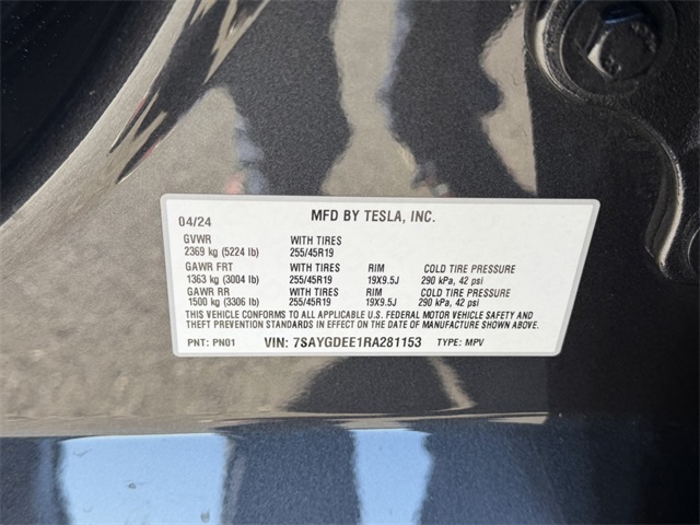 CARFAX One-Owner.122/112 City/Highway MPGGray 2024 Tesla Model Y Long Range AWD 1-Speed Automatic Electric MotorIf you don't drive here, you can't save here!Price may not include recon fee. 14 Speakers, 4-Wheel Disc Brakes, 5 Seat Interior, 9.0 Axle Ratio, ABS brakes, Air Conditioning, Alloy wheels, Audio memory, Auto High-beam Headlights, Auto tilt-away steering wheel, Auto-dimming door mirrors, Auto-dimming Rear-View mirror, Automatic temperature control, Brake assist, Bumpers: body-color, Compass, Delay-off headlights, Driver door bin, Driver vanity mirror, Dual front impact airbags, Dual front side impact airbags, Electronic Stability Control, Emergency communication system, Exterior Parking Camera Rear, Four wheel independent suspension, Front anti-roll bar, Front Bucket Seats, Front Center Armrest, Front dual zone A/C, Front fog lights, Front reading lights, Fully automatic headlights, Genuine wood dashboard insert, Heated door mirrors, Heated front seats, Heated rear seats, Heated steering wheel, HVAC memory, Illuminated entry, Knee airbag, Lane Departure Warning System, Low tire pressure warning, Memory seat, Navigation System, Occupant sensing airbag, Outside temperature display, Overhead airbag, Passenger door bin, Passenger vanity mirror, Power door mirrors, Power driver seat, Power Liftgate, Power passenger seat, Power steering, Power windows, Radio data system, Radio: Premium Audio System w/13 Speakers, Rain sensing wipers, Rear reading lights, Rear seat center armrest, Rear window defroster, Security system, Speed control, Speed-sensing steering, Split folding rear seat, Steering wheel memory, Steering wheel mounted A/C controls, Steering wheel mounted audio controls, Telescoping steering wheel, Tilt steering wheel, Traction control, Trip computer, Variably intermittent wipers, Vegan Leather Seat Trim, and Wheels: 19" x 9.5" Gemini Dark.