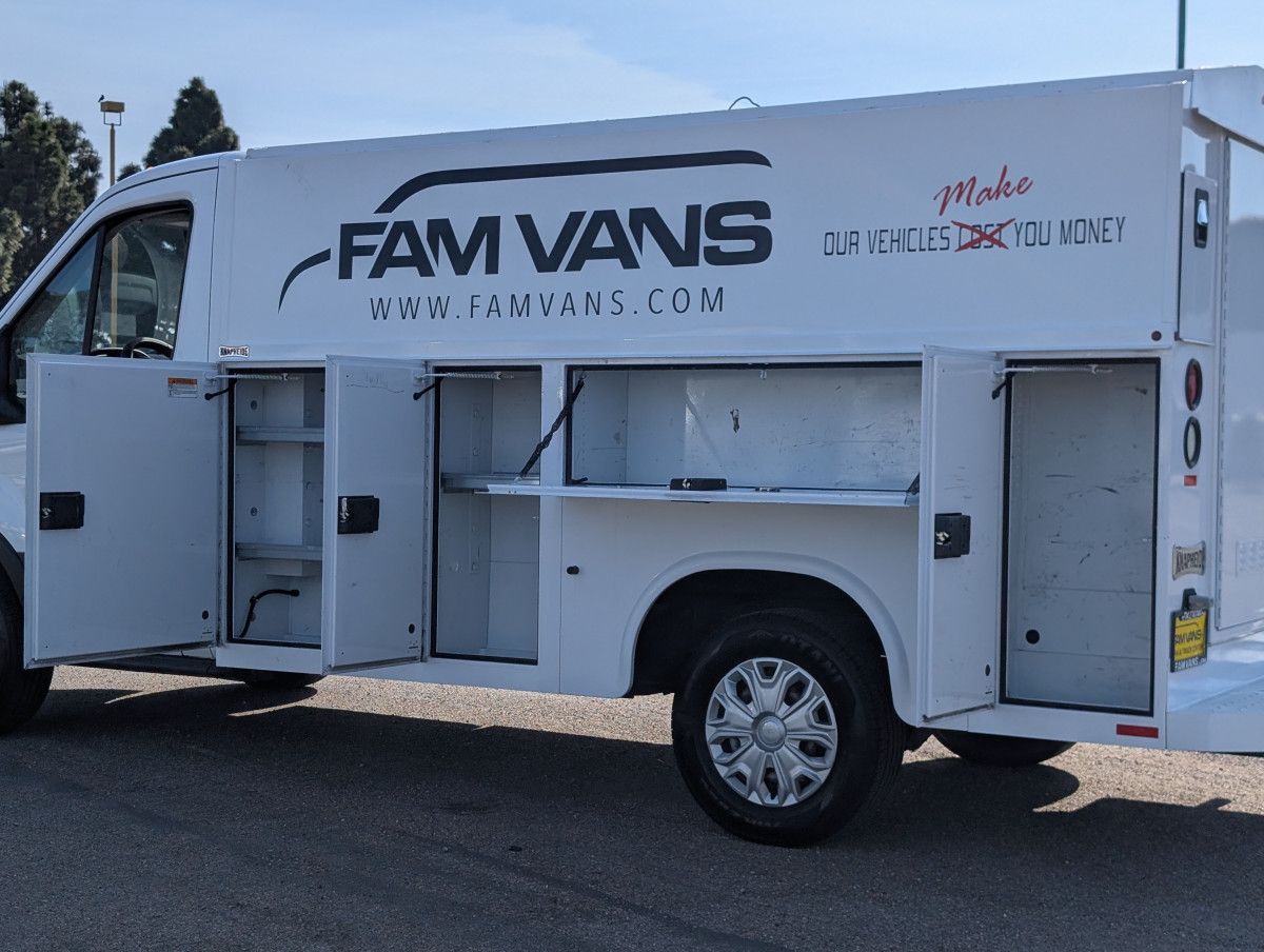 Here at FAM Vans we have over 350 vans and trucks in stock at any given time, plus we get fresh inventory every month. We can modify any vehicle to fit your needs or find the right one that fits your budget! Full Parts and Service departments. -138-in WB -GVWR: 9,000 LBS -10 exterior storage compartments -Dimensions: 223.3 L x 80.8 W x 87.3 H