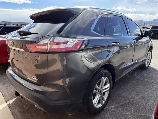 Recent Arrival!Priced below KBB Fair Purchase Price!22/29 City/Highway MPGMagnetic 2019 Ford Edge SEL FWD 8-Speed Automatic EcoBoost 2.0L I4 GTDi DOHC Turbocharged VCTIf you don't drive here, you can't save here!Price may not include recon fee. Convenience Package (110V/150W AC Power Outlet, Foot-Activated Hands-Free Liftgate, Perimeter Alarm, Remote Start System, Universal Garage Door Opener (UGDO), and Wireless Charging Pad), Equipment Group 201A (2 Driver Configurable 4.2" Color LCD Displays, ActiveX Seating Material Heated Bucket Seats, LED Signature Daytime Running Lamps, and Premium 9 Speaker Audio System), Ford Co-Pilot360 Assist+ (Adaptive Cruise Control w/Stop & Go, Evasive Steering Assist, Lane Centering, SiriusXM Traffic & Travel Link, and Voice-Activated Touchscreen Navigation System), 4-Wheel Disc Brakes, 6 Speakers, ABS brakes, Air Conditioning, Alloy wheels, AM/FM radio: SiriusXM, AppLink/Apple CarPlay and Android Auto, Auto High-beam Headlights, Auto-dimming Rear-View mirror, Automatic temperature control, Axle Ratio: TBA, Brake assist, Bumpers: body-color, Compass, Delay-off headlights, Driver door bin, Driver vanity mirror, Dual front impact airbags, Dual front side impact airbags, Electronic Stability Control, Emergency communication system: SYNC 3 911 Assist, Four wheel independent suspension, Front anti-roll bar, Front Bucket Seats, Front Center Armrest w/Storage, Front dual zone A/C, Front fog lights, Front reading lights, Fully automatic headlights, Heated door mirrors, Illuminated entry, Knee airbag, Low tire pressure warning, Occupant sensing airbag, Outside temperature display, Overhead airbag, Overhead console, Panic alarm, Passenger door bin, Passenger vanity mirror, Power door mirrors, Power driver seat, Power passenger seat, Power steering, Power windows, Radio: AM/FM Stereo/MP3 Capable, Rain sensing wipers, Rear anti-roll bar, Rear Parking Sensors, Rear reading lights, Rear seat center armrest, Rear window defroster, Rear window wiper, Remote keyless entry, Roof rack: rails only, SiriusXM Radio, Speed control, Speed-Sensitive Wipers, Split folding rear seat, Spoiler, Steering wheel mounted audio controls, SYNC 3 Communications & Entertainment System, Tachometer, Telescoping steering wheel, Tilt steering wheel, Traction control, Trip computer, Turn signal indicator mirrors, Unique Cloth Bucket Seats, Variably intermittent wipers, and Wheels: 18" Sparkle Silver-Painted Aluminum.