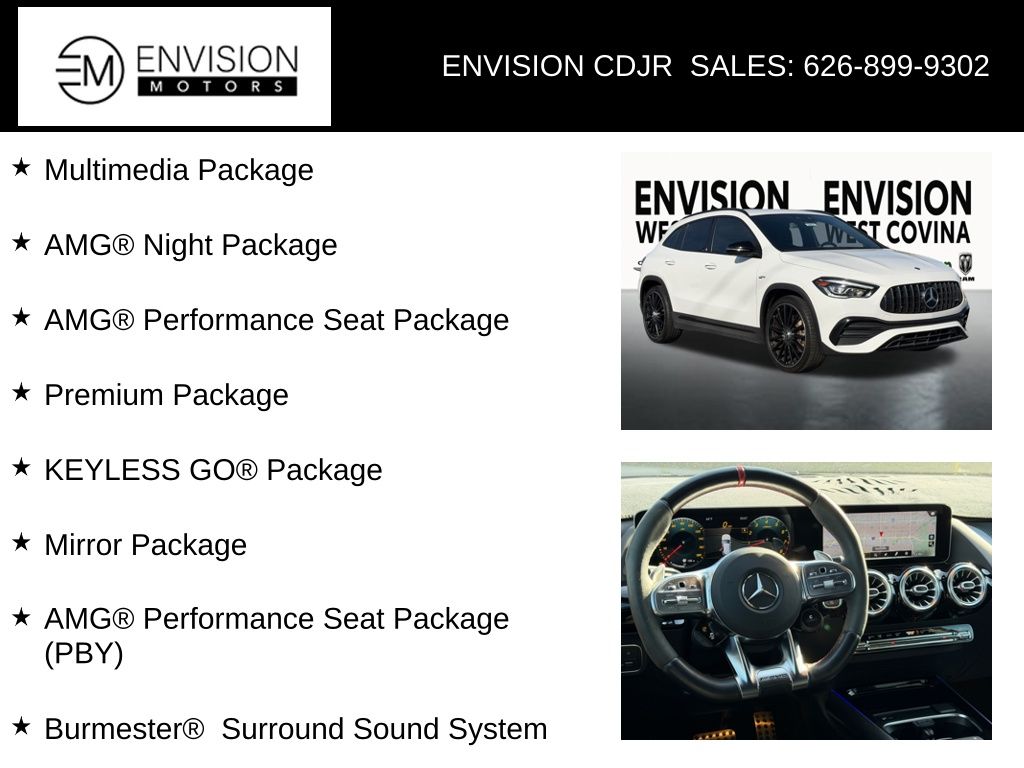 WE SPECIALIZE IN ALL CREDIT PROFILES! See what we can do for you! Call to find out (626) 899-9302.Clean CARFAX.Odometer is 6962 miles below market average! 23/29 City/Highway MPG AMG® Night Package, AMG® Performance Seat Package, AMG® Performance Seat Package (PBY), AMG® Performance Seats by RECARO, Auto-Dimming Rearview & Driver-Side Mirrors, Burmester® Surround Sound System, HANDS-FREE ACCESS, Heated Front Seats, KEYLESS GO®, KEYLESS GO® Package, MB Navigation, MBUX Augmented Reality for Navigation, Mirror Package, Multi-Contour Front Seats, Multimedia Package, OTA Nav Map Updates, Power-Folding Side Mirrors, Premium Package, Roof Rails w/Gloss Black Finish, Speed Limit Assist & Traffic Sign Assist.Polar White2021 Mercedes-Benz GLA GLA 35 AMG 4MATIC® 8-Speed Automatic I4**********All Pricing and Advertised Prices for any/all vehicles offered for sale does not include dealer installed accessories which can be purchased for an additional cost.********** The Factory Rebates may not be available on this vehicle if you elect to take advantage of a Special Alternative APR or Special Lease program. Some Factory Rebates are California Resident specific and may vary for residents of other states. NO sales to Dealers, Brokers or Exporters. For out of state purchase, customers must be present to purchase. If shipping is required, dealership must facilitate; no exceptions. Please contact us for special Multi-Vehicle or Fleet pricing. Prices are plus government fees and taxes, any finance charges, $85 documentary fee, $29 electronic registration fee, any emission testing charge and $1.75 per new tire state tire fee. *** We make every effort to provide accurate information, but please verify before purchasing. Leasing & financing available on approved credit. Trade-ins accepted. Subject to prior sale.