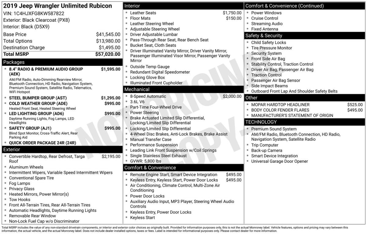 2019 Jeep Wrangler Unlimited Rubicon To see more quality vehicles like this one right just click on AaronFordofPoway.com or dial (858) 748-1400.CARFAX One-Owner. Clean CARFAX.