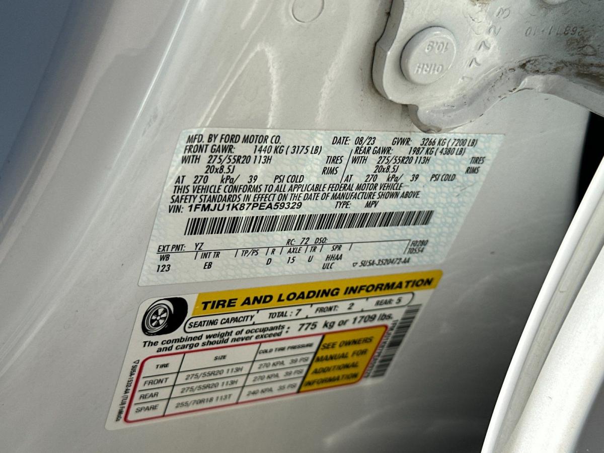 Discover the perfect balance of power, comfort, and style with this exceptional 2023 Ford Expedition Limited. This SUV is a true testament to Ford's commitment to engineering excellence, offering a remarkable driving experience that will captivate even the most discerning automotive enthusiast.- Navigation System- 12 Speakers- SYNC 4 with Enhanced Voice Recognition- Dual-Zone Automatic Climate Control- Heated and Ventilated Leather Front Captain's Chairs- Power Moonroof- Power LiftgateBoasting a stunning White exterior, this Expedition Limited is powered by a potent EcoBoost 3.5L V6 engine, delivering exceptional performance and efficiency with its 10-speed automatic transmission and rear-wheel drive configuration. With an impressive EPA-estimated 23 MPG on the highway, you can enjoy the open road with confidence, knowing you're getting the most out of every tank of fuel.But the true allure of this Expedition lies in its exceptional array of features. The B&O Sound System by Bang & Olufsen provides an immersive audio experience, while the SYNC 4 infotainment system with enhanced voice recognition keeps you connected and in control. The power-adjustable and memory-equipped front seats, along with the heated and ventilated functionality, ensure unparalleled comfort on even the longest journeys.Step inside and you'll be greeted by a spacious and well-appointed cabin, with ample room for up to eight passengers and their cargo. The split-folding third-row seat and power-operated liftgate make loading and unloading a breeze, while the four-wheel independent suspension and speed-sensing steering provide a smooth and responsive ride.Safety is also a top priority, with features like the emergency communication system, dual front and side impact airbags, and electronic stability control working together to protect you and your loved ones. The Expedition Limited also boasts a host of advanced driver-assistance technologies, including the Rear View Camera, Auto High-Beam Headlights, and Blind Spot Monitoring, giving you the confidence to navigate even the busiest roads.This 2023 Ford Expedition Limited is a true standout in the SUV segment, offering a winning combination of power, technology, and premium amenities. With its exceptional value and uncompromising quality, it's the perfect choice for those seeking the ultimate in versatility, comfort, and driving enjoyment. Experience the difference for yourself – schedule a test drive today and discover the exceptional capabilities of this remarkable vehicle.