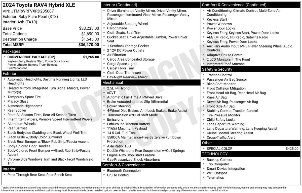 2.5L 4-Cylinder. 2024 Toyota RAV4 Hybrid XLE Recent Arrival! To see more quality vehicles like this one right just click on AaronFordofPoway.com or dial (858) 748-1400.CARFAX One-Owner. Clean CARFAX.