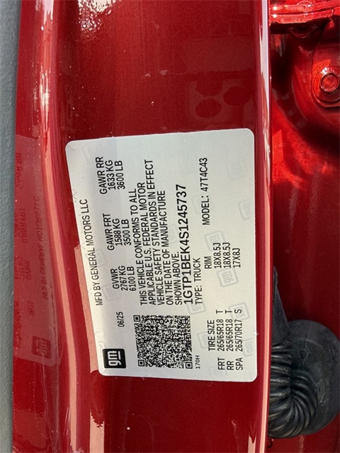 Recent Arrival!CARFAX One-Owner.Volcanic Red 2025 GMC Canyon Elevation RWD 8-Speed Automatic 2.7L I4 Turbocharged DOHC 16V LEV3-SULEV30 310hpIf you don't drive here, you can't save here!Price may not include recon fee. Canyon Safety Plus Package (Blind Zone Steering Assist w/Trailering, Rear Cross Traffic Braking, and Ultrasonic Rear Park Assist), Convenience Package (120-Volt Bed Mounted Power Outlet, 2 Rear USB Ports in Center Console (Charge-Only), Driver & Front Passenger Illuminated Visors, Dual-Zone Auto Climate Control Air Conditioning, EZ-Lift & Lower Tailgate, Front LED Fog Lamps, Inside Rear-View Auto-Dimming Mirror, Interior Overhead Courtesy Light w/Dual Reading Lamp, MultiStow Tailgate Storage Compartment, Rear of Console 120-Volt Power Outlet, Remote Vehicle Starter System, Tailgate Keyed Cylinder Lock, and Tilt & Telescopic Manual Steering Column), Preferred Equipment Group 2VL (Automatic Emergency Braking, Canyon Pro Safety, Following Distance Indicator, Forward Collision Alert, Front Pedestrian & Bicyclist Braking, IntelliBeam Automatic High Beam On/Off, and Lane Keep Assist w/Lane Departure Warning), Preferred Package (8-Way Power Driver Seat Adjuster, Heated Driver & Front Passenger Seats, and Power Driver Lumbar Control Seat Adjuster), 1 Rear USB Port in Center Console (Charge-Only), 2 1st Row USB Charge/Data Ports, 3.42 Rear Axle Ratio, 4-Way Manual Front Passenger Seat Adjuster, 4-Wheel Disc Brakes, 6 Speakers, 6-Speaker Audio System Feature, 6-Way Manual Driver Seat Adjuster, ABS brakes, Air Conditioning, Alloy wheels, AM/FM radio, Apple CarPlay/Android Auto, Auto High-beam Headlights, Automatic Stop/Start, Brake assist, Bumpers: body-color, Cargo Tie-Downs (4) (LPO), Cloth Seat Trim, Compass, Delay-off headlights, Driver door bin, Driver vanity mirror, Dual front impact airbags, Dual front side impact airbags, Electronic Stability Control, Emergency communication system: OnStar, Front anti-roll bar, Front Bucket Seats, Front Center Armrest, Front License Plate Kit, Front Passenger Seatback Map Pocket, Front wheel independent suspension, GMC Black Chrome Exhaust Tip (LPO), Heated door mirrors, Illuminated entry, Low tire pressure warning, Navigation System, Occupant sensing airbag, Off-Road Suspension, Outside temperature display, Overhead airbag, Overhead console, Panic alarm, Passenger door bin, Passenger vanity mirror, Power door mirrors, Power steering, Power windows, Radio data system, Radio: 11.3" Diagonal Premium GMC Infotainment Sys, Rear reading lights, Rear step bumper, Rear window defroster, Remote keyless entry, Security system, SiriusXM w/360L, Speed control, Speed-sensing steering, Split folding rear seat, Steering wheel mounted audio controls, Stop/Start System Disable Button Engine Control, Tachometer, Tilt steering wheel, Traction control, Trip computer, Variably intermittent wipers, Wheels: 18" x 8.5" Dark Gray Painted Aluminum, and Wireless Apple CarPlay/Wireless Android Auto.
